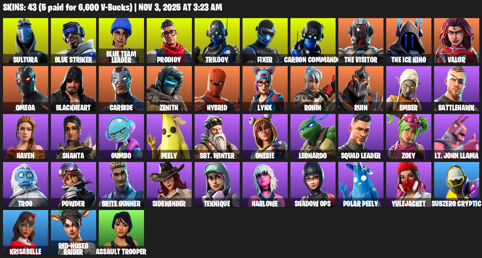 [PC/XBOX] | 43 skins | Omega | Reaper Axe | Sultura | Blue Striker | Blue Team Leader | Prodigy | Trilogy | Fixer | Carbon Commando | S4G