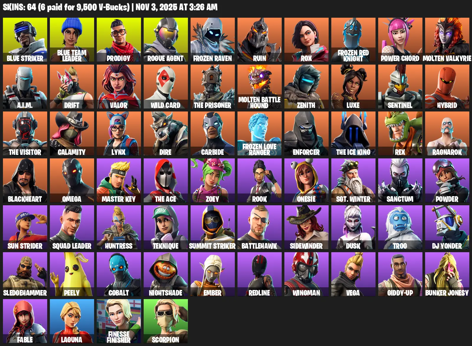 [PC/XBOX] | 64 skins | Omega | Reaper Axe | Blue Striker | Blue Team Leader | Prodigy | Rogue Agent | Frozen Raven | Ruin | Rox | S4G