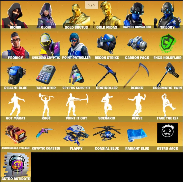 [PC\XBOX] 88 skins | IKONIK | Glow | Gold Brutus | Gold Midas | Carbon Commando | Trilogy | Prodigy | Subzero Cryptic | Point Patroller | Lynx | 350 VB
