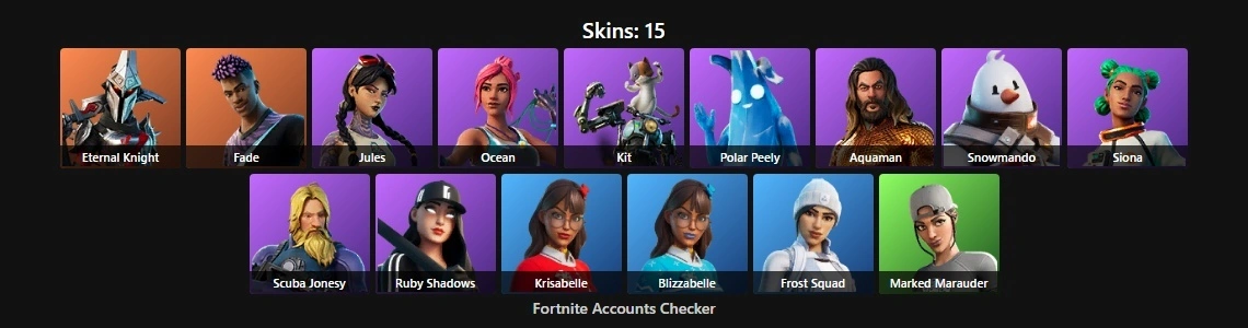 PC/XBOX/PSN 15 Skins⚡ | Eternal Knight | Fade | Jules | Ocean | Kit | Polar Peely | Aquaman | Snowmando | Siona | Scuba Jonesy | Ruby Shadows | Krisabelle