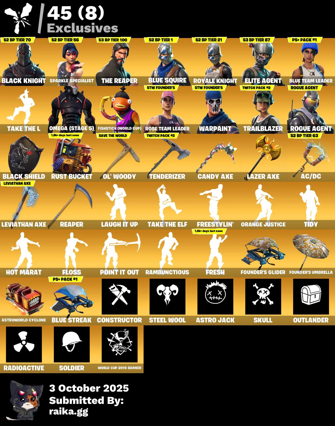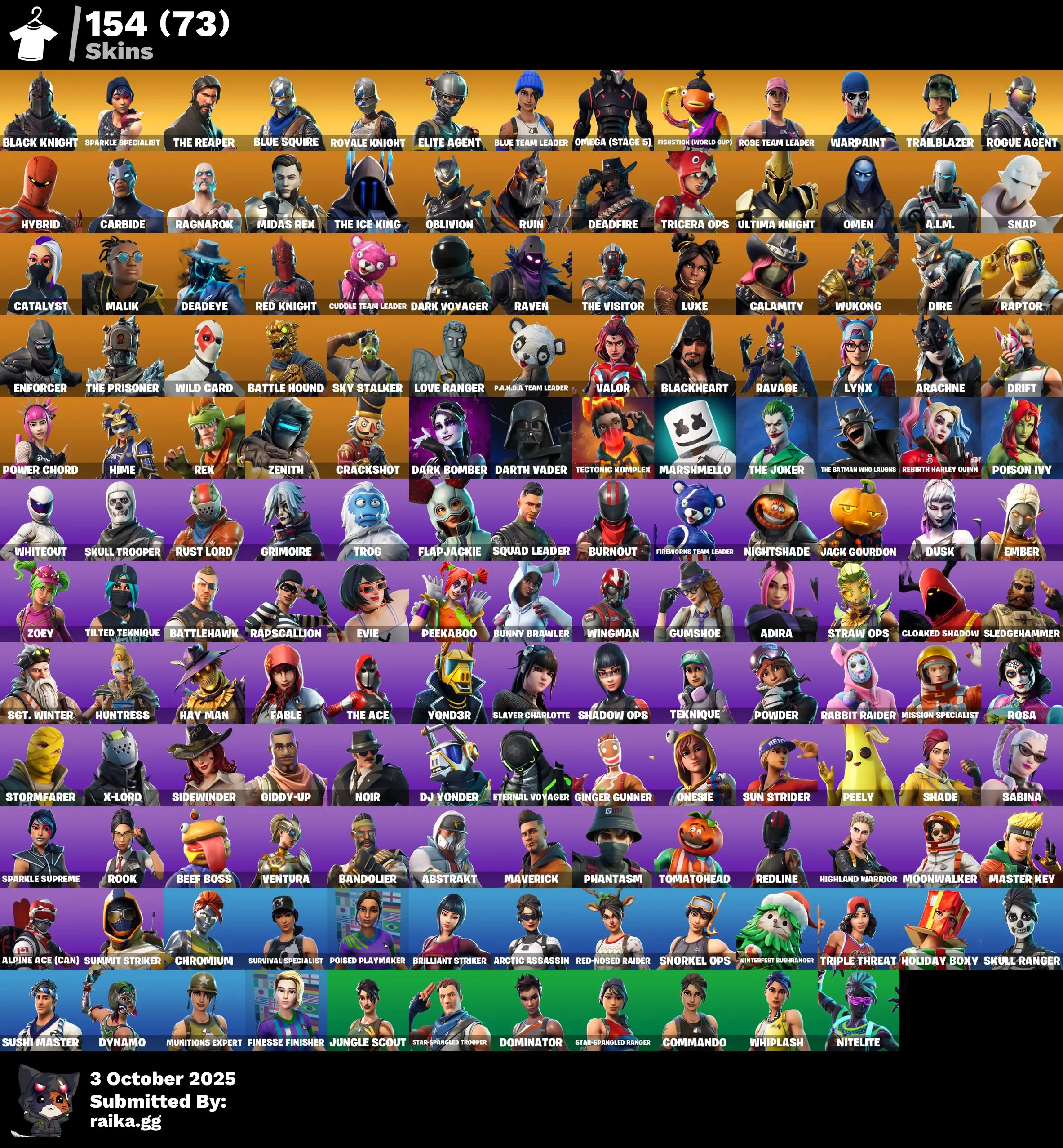 [PC/XBOX/PSN] 154 Skins | OG STW | Black Knight | The Reaper | Sparkle Specialist | Rose Team Leader | Leviathan Axe | Take the L | 1350 VB