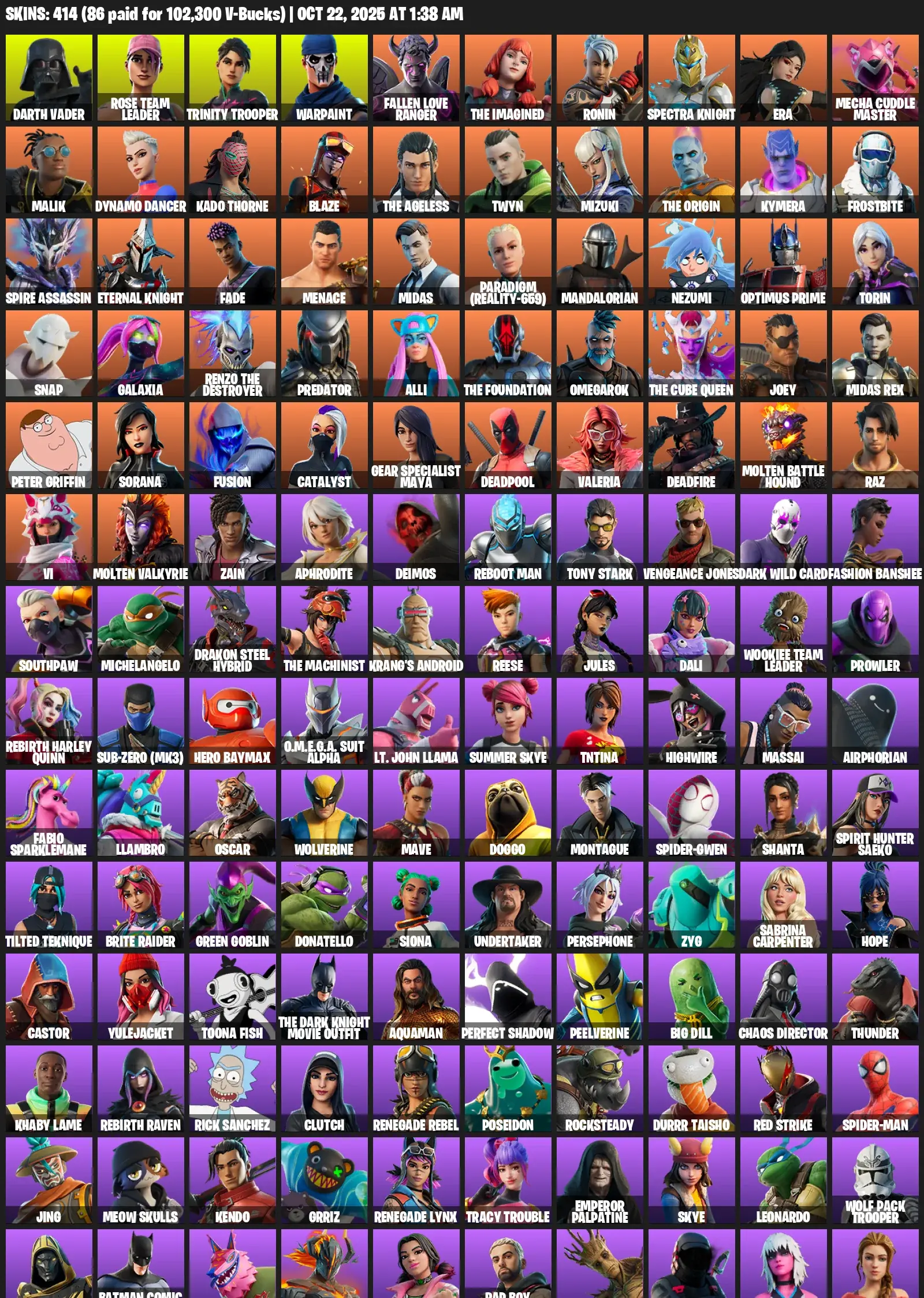 [PC/XBOX/PSN] 414 Skins | Darth Vader | Rose Team Leader | Trinity Trooper | Warpaint | Fallen Love Ranger | The Imagined | Ronin | Spectra Knight | Era | Mecha Cuddle Master | Malik | Dynamo Dancer | Kado Thorne | Blaze | The Ageless | Twyn | Mizuki