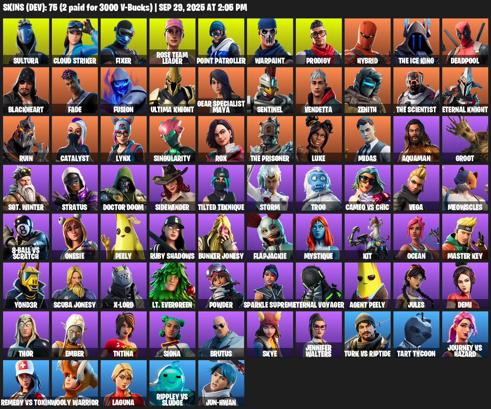[PC/XBOX/PSN] 75 Skins | Sultura | Cloud Striker | Fixer | Rose Team Leader | Point Patroller | Warpaint | Prodigy | Hybrid | The Ice King | Deadpool | Blackheart | Fade | Fusion | Ultima Knight | Gear Specialist Maya | Sentinel | Vendetta | Zenith
