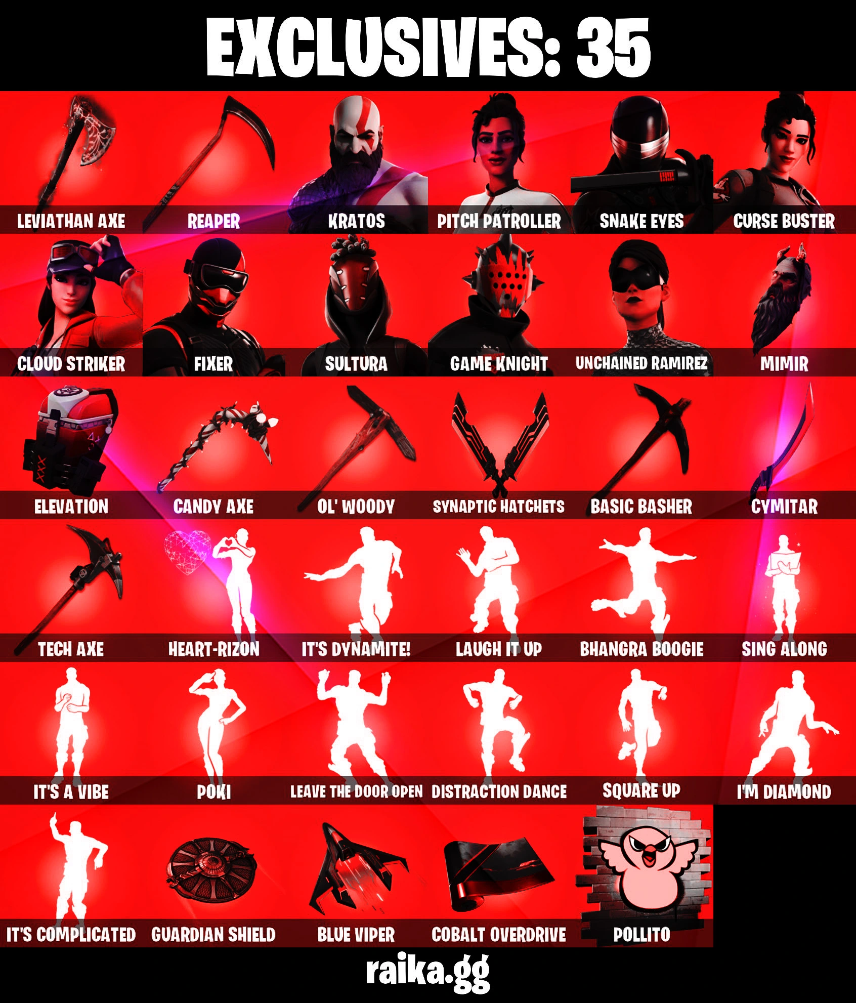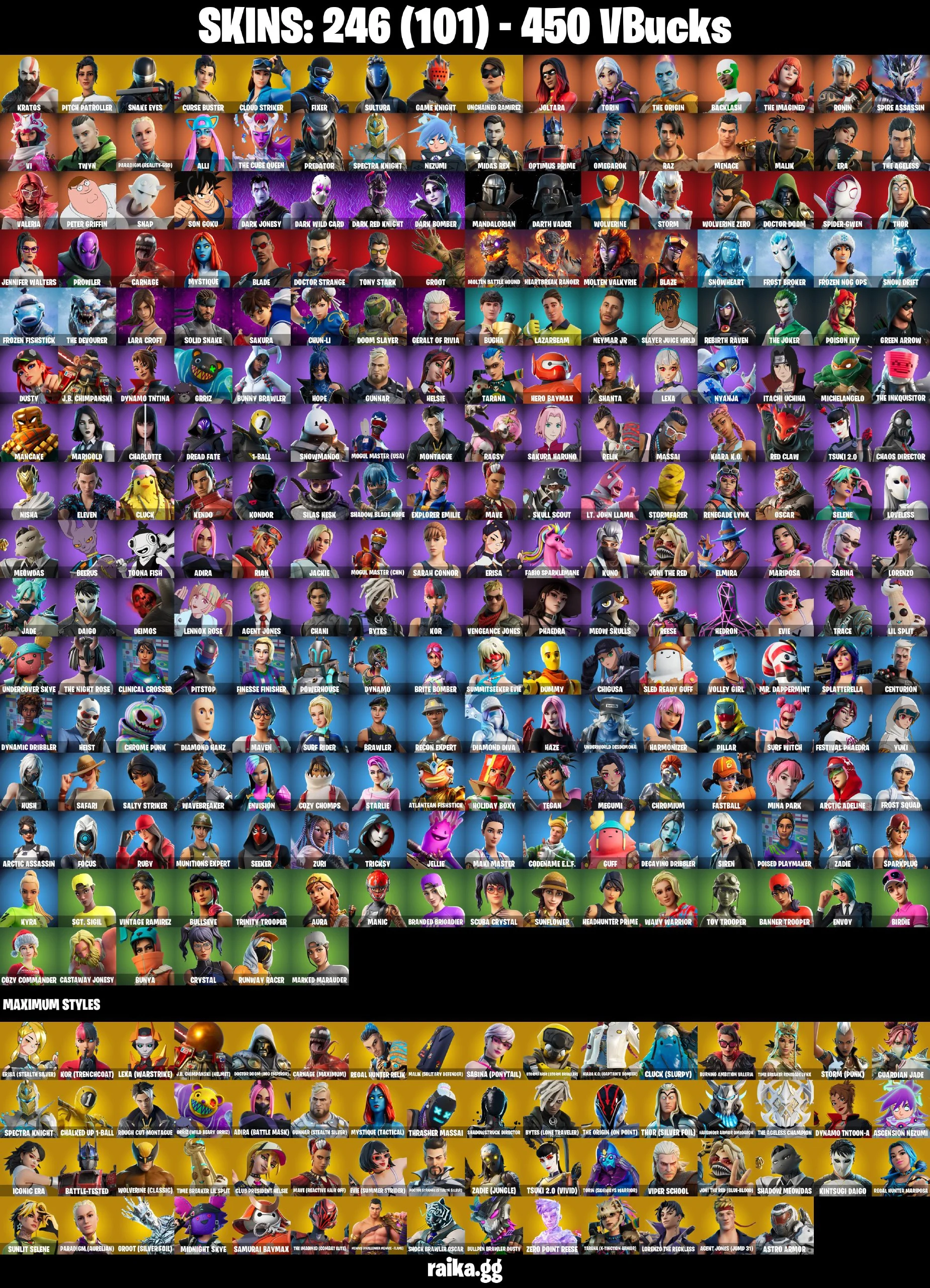 🎁✨STACKED OG BUNDLE✨🎁 246 SKINS 🌙 LEVIATHAN AXE 🌙 UNCHAINED RAMIREZ 🌙 CHUN LI 🌙 TONY STARK 🌙 REAPER 🌙 KRATOS 🌙 PITCH PATROLLER 🌙 SNAKE EYES 🌙 CURSE BUSTER 🌙 CLOUD STRIKER 🌙 SULTURA 🌙 JOLTARA 🌙 TORIN 🌙 THE ORIGIN 🌙 450 VBUCKS ⚡️PC/PSN/XBOX⚡️