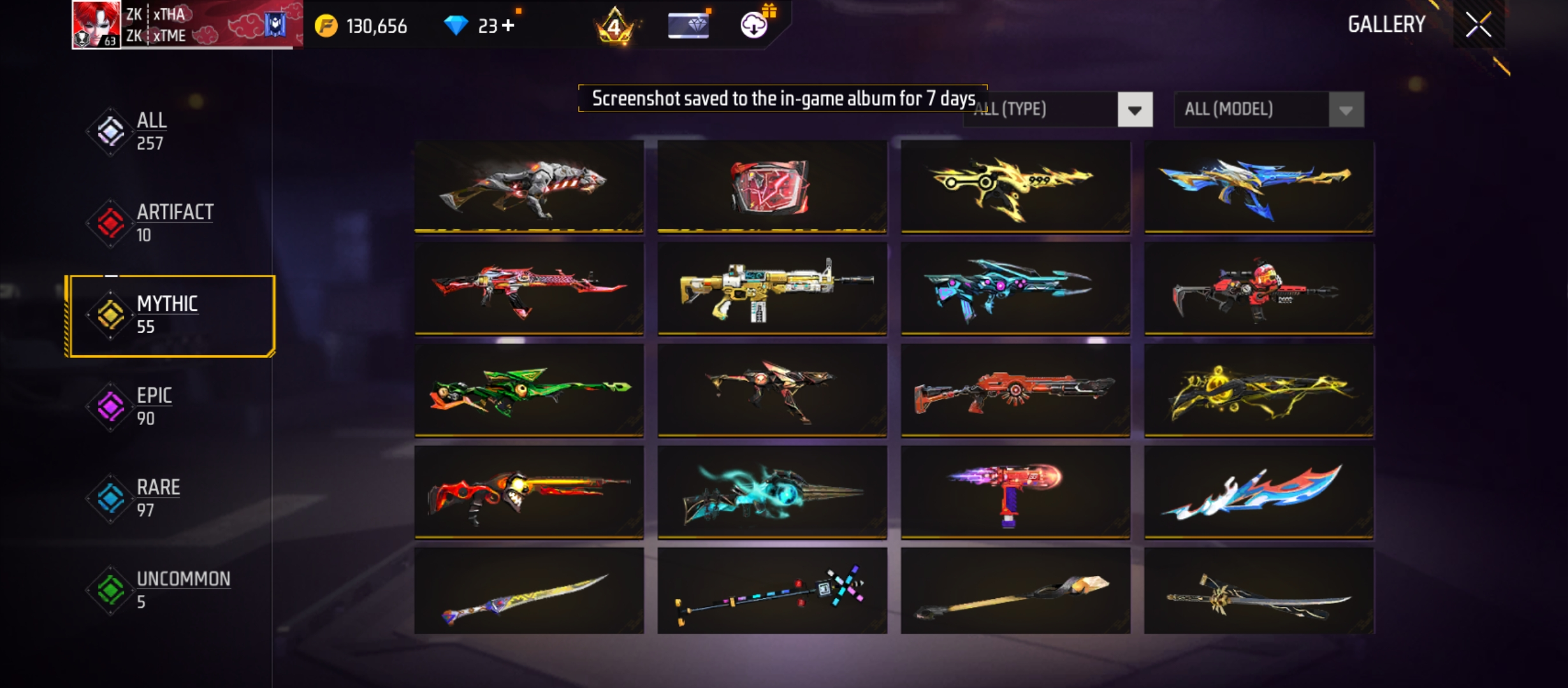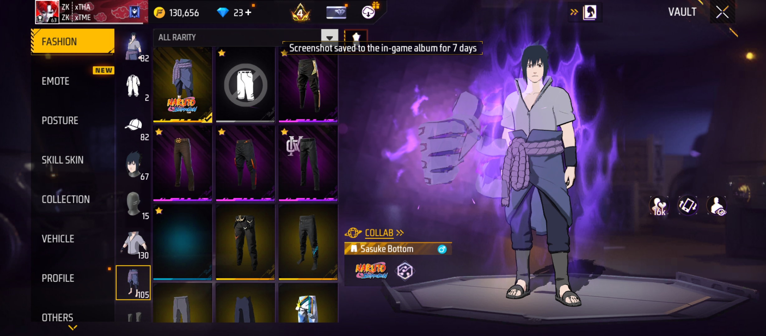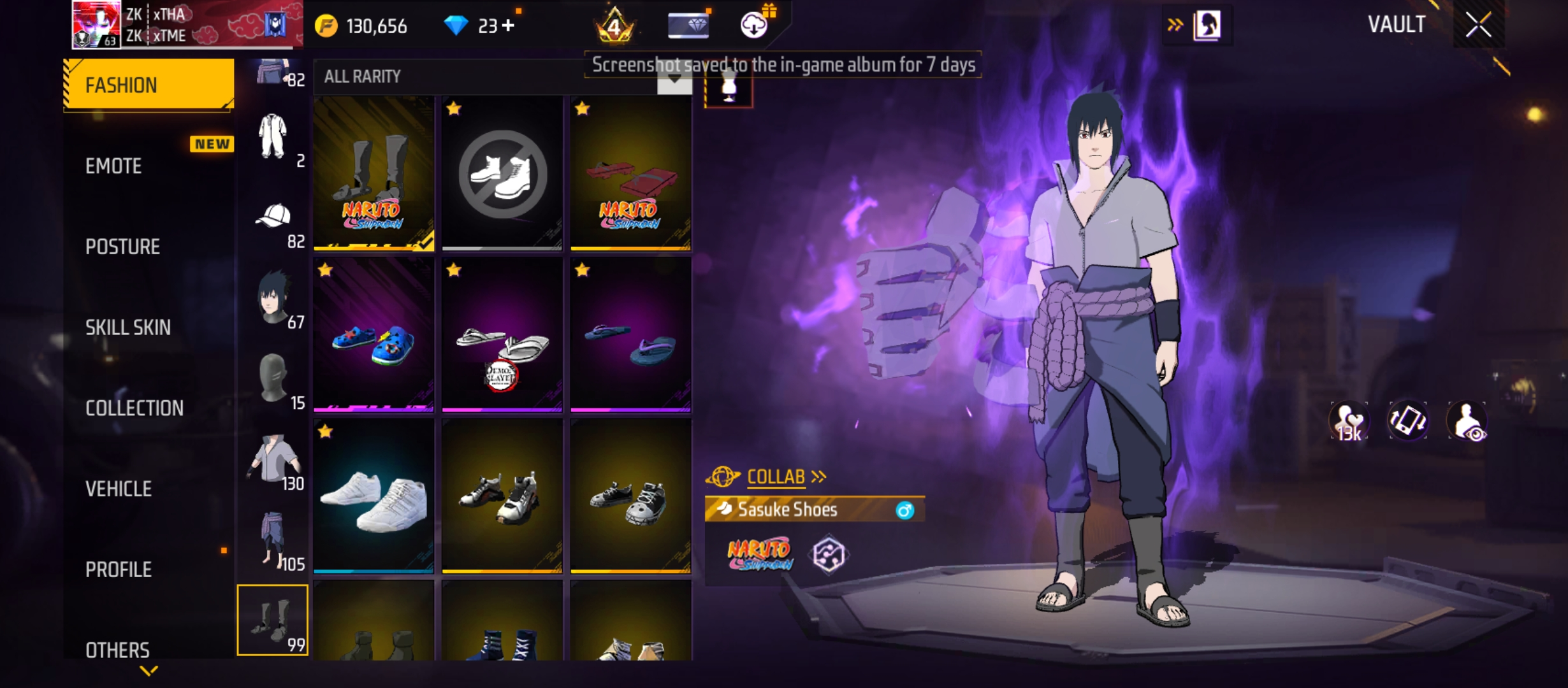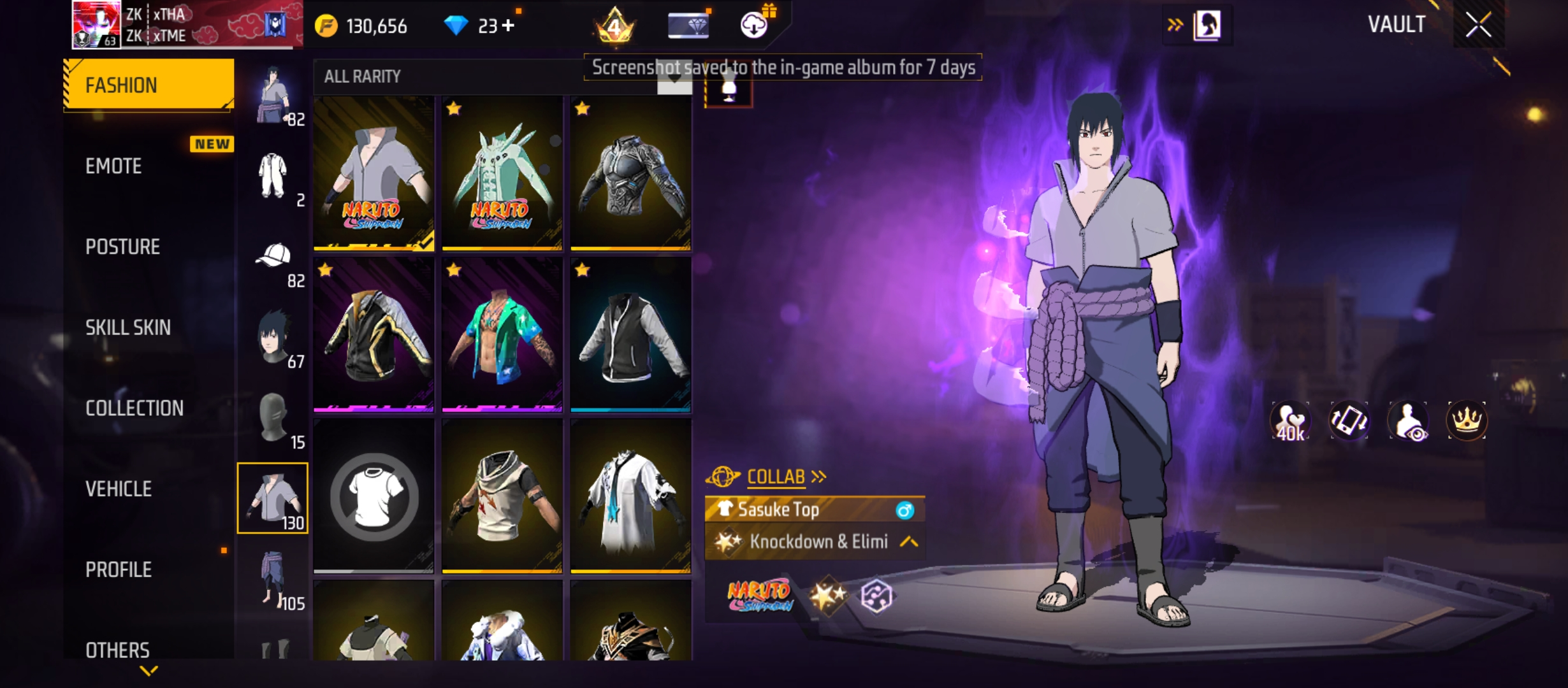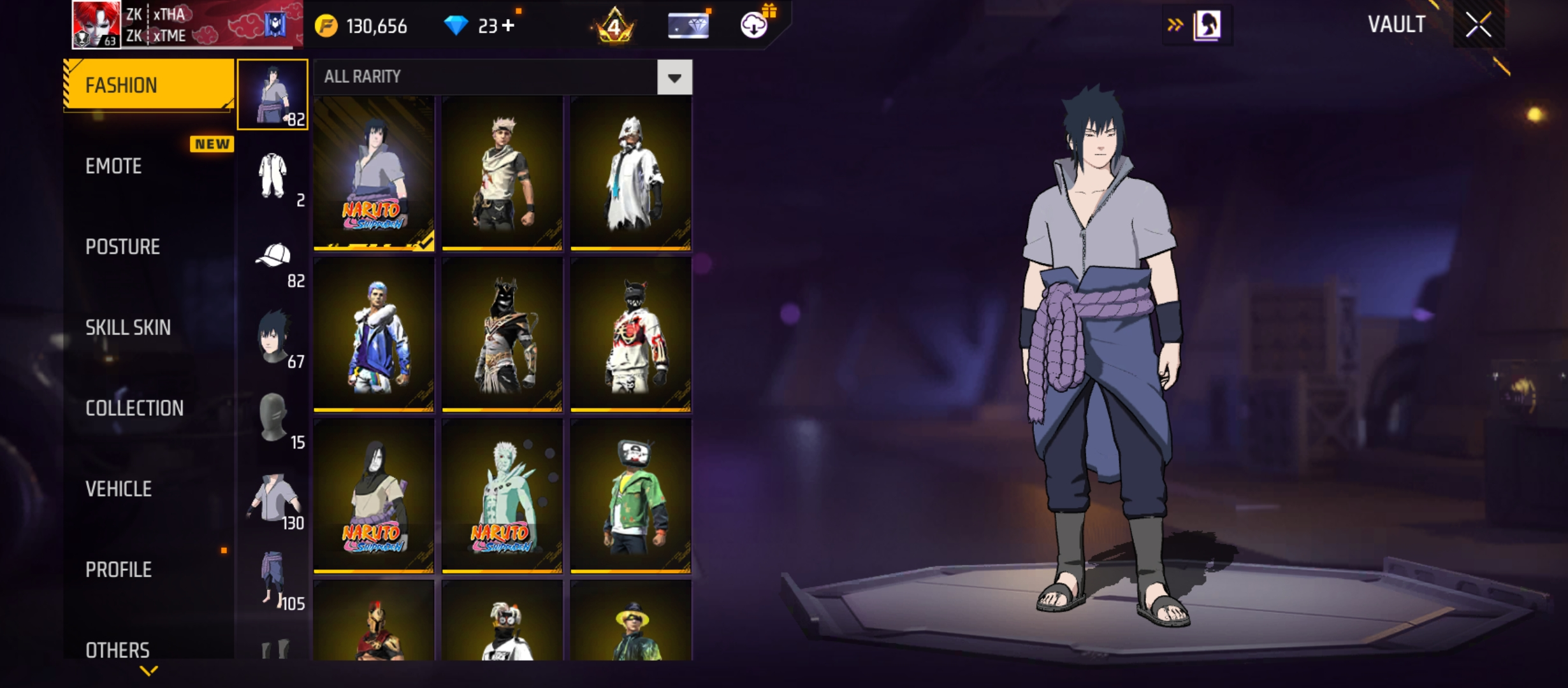 X305|Lvl 63|84 BUNDLE|SASUKE BUNDLE|130 COSTUME(39 MYTHIC)|257 WEAPON(10 EVO+55 MYTHIC)|NARUTO M4A1|M1887 Conqueror Lv 4|M1014 Scorpio Lv 4|46 VEHICLE