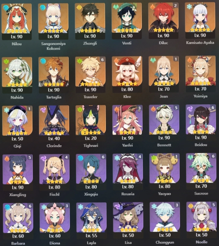 [ASIA HANDLEVELED] AR 57+Nilou | Key + Nahida + Kokomi + Yoimiya | TP + Ayaka + Zhongli + Tartaglia and more #ITEM-160682