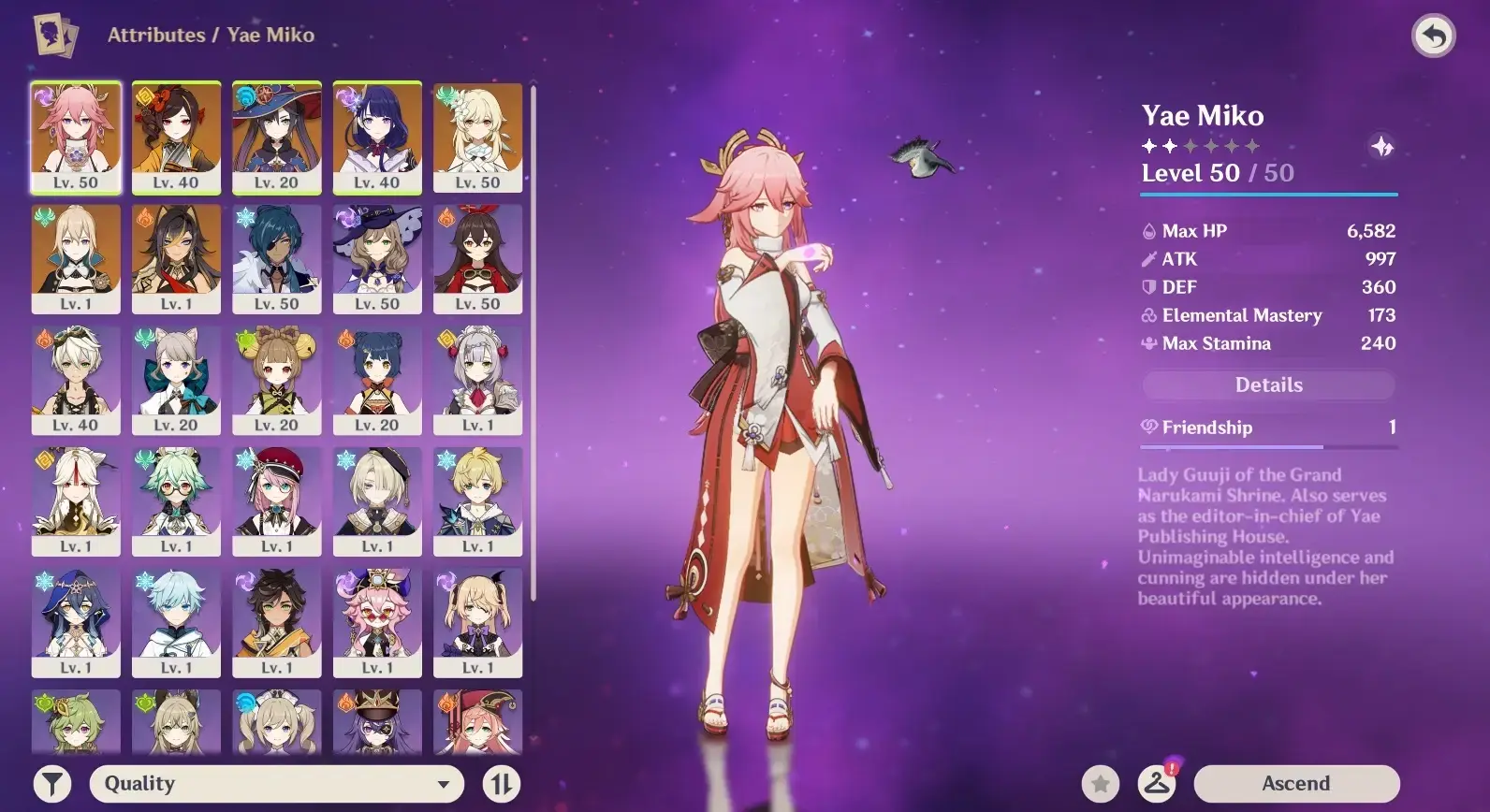 EU AR48 | 5 stars*7 Chiori | Dehya | Jean(C1) | Mona | Raiden Shogun | Yae Miko(C2) | Kagura's Verity | lots of 4* characters and weapons