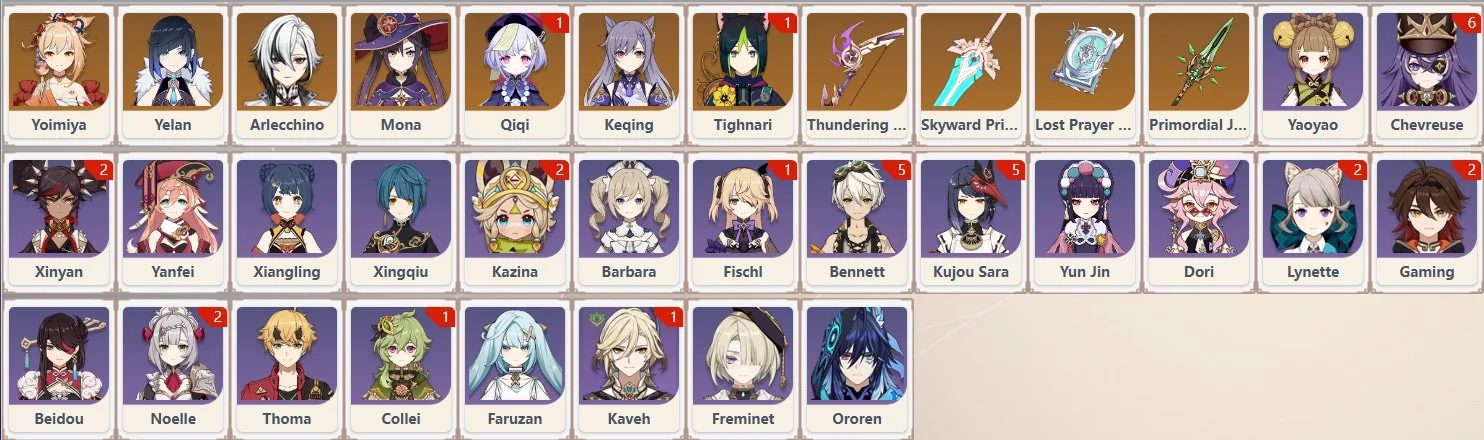 EUROPE  Yoimiya + Pulse, Elan, Arlekino, Ke Qing, Tignari C1  WITHOUT EMAIL LINK