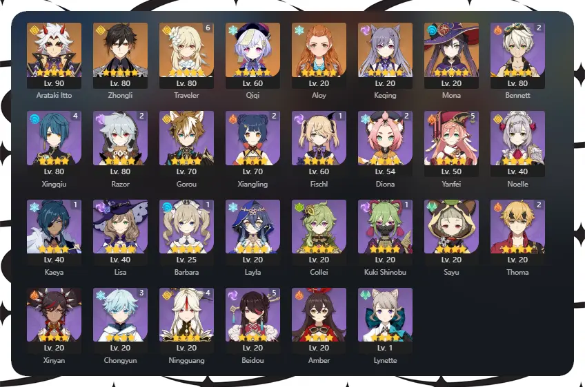[NA] ✅ AR 54 | 30 CHARACTERS | 5 LEGENDARY | ARTAKI ITTO ⸱ ZHONGLI ⸱ QIQI ⸱ MONA ⸱ KEQING ⸱ ALOY | 302 ACHIEVEMENTS | INSTANT DELIVERY | FULL ACCESS