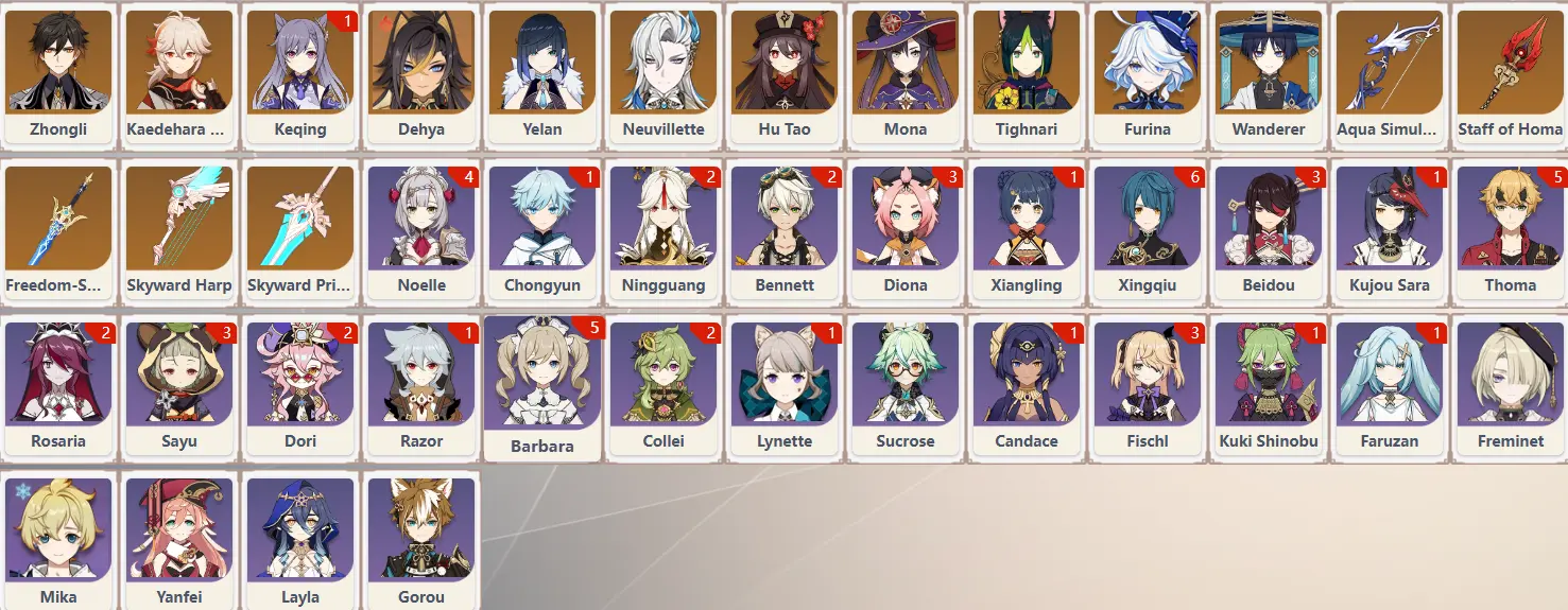 ![[NA]AR55|FiveStars*11||Zhongli|Kaedehara Kazuha+arms|Yelan+arms|Navelette| Fernina|Hu Tao+arms| Wanderer|Keqing*1|Dehya|Mona |Tighnari|See description and pictures for details|Fast shipping](https://cdn.gameboost.com/static/servers/sm/AM.webp)