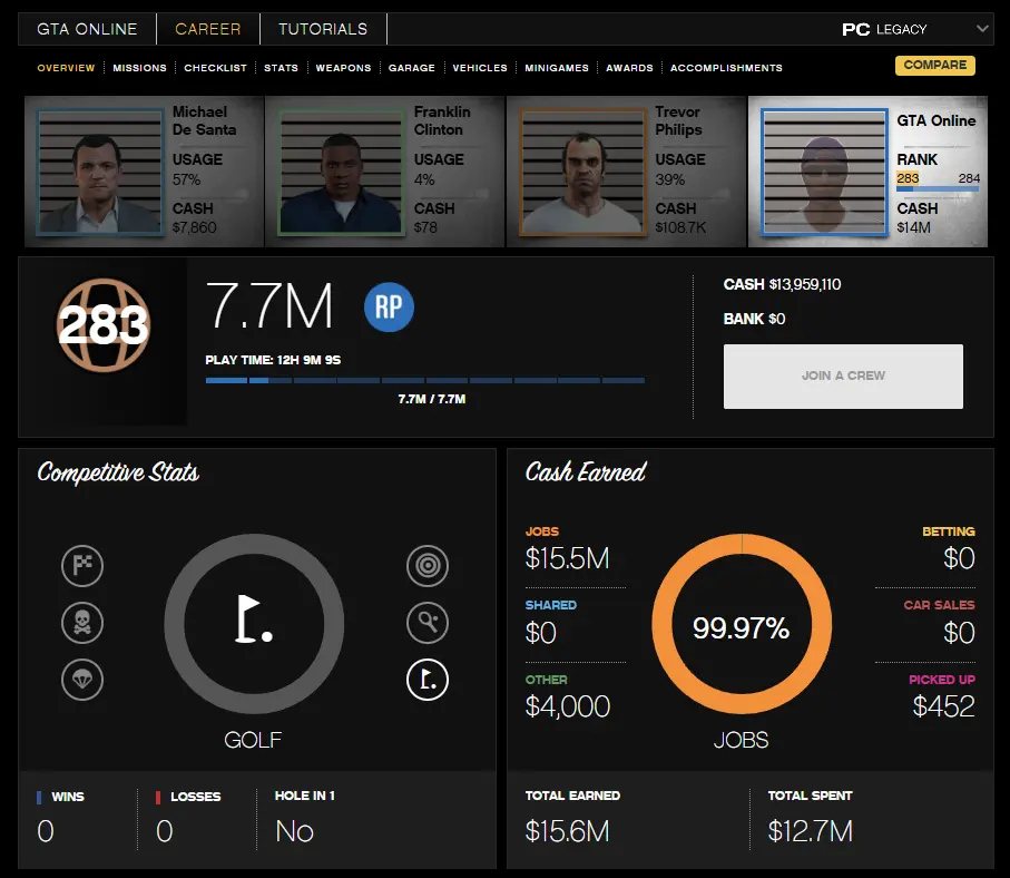 SOCIAL CLUB / ROCKSTAR / PC / LEGACY | $14M PURE CASH | RP level 283 | MALE | STORY MODE avaliable | Changable Email | HANDCRAFTED