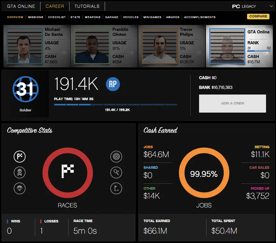 SOCIAL CLUB / ROCKSTAR / PC / LEGACY | $16.7M PURE CASH | RP level 31 | MALE | STORY MODE avaliable | Changable Email | HANDCRAFTED