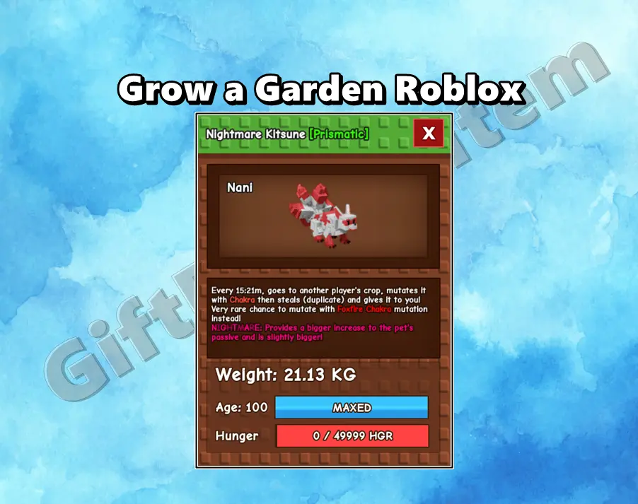 Mutation Nightmare Kitsune 20Kg ++ Age 100 Grow a Garden