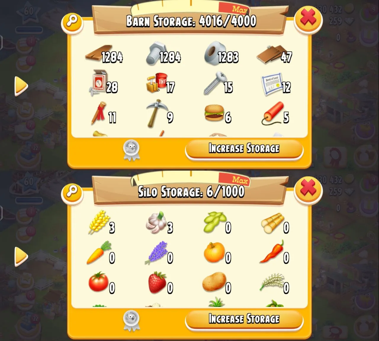 🔥 FLASH-SALE 🔥 4000 BARN STORAGE LEVEL 60 | SILO 6:1000 | 4000 BARN FILLED | 2.5 COINS | 265 DIAMOND | INSTANT DELIVERY |