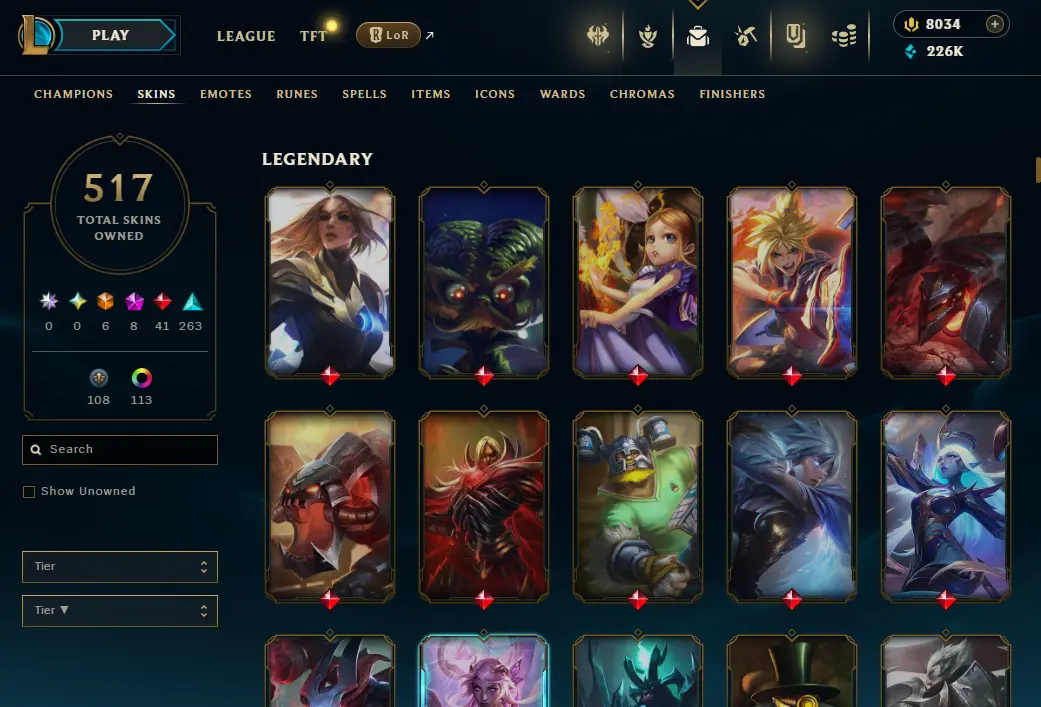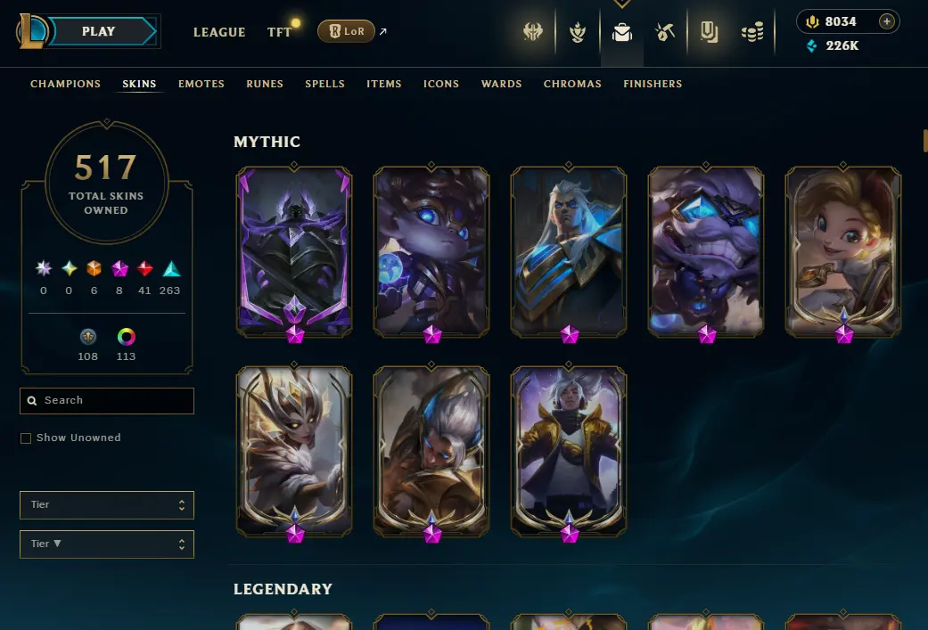 EUW | 519 Skins | 165 Champions | UFO Corki, Ashen Graveknight Mordekaiser | 10 Mythics | ChicksQLOLS03