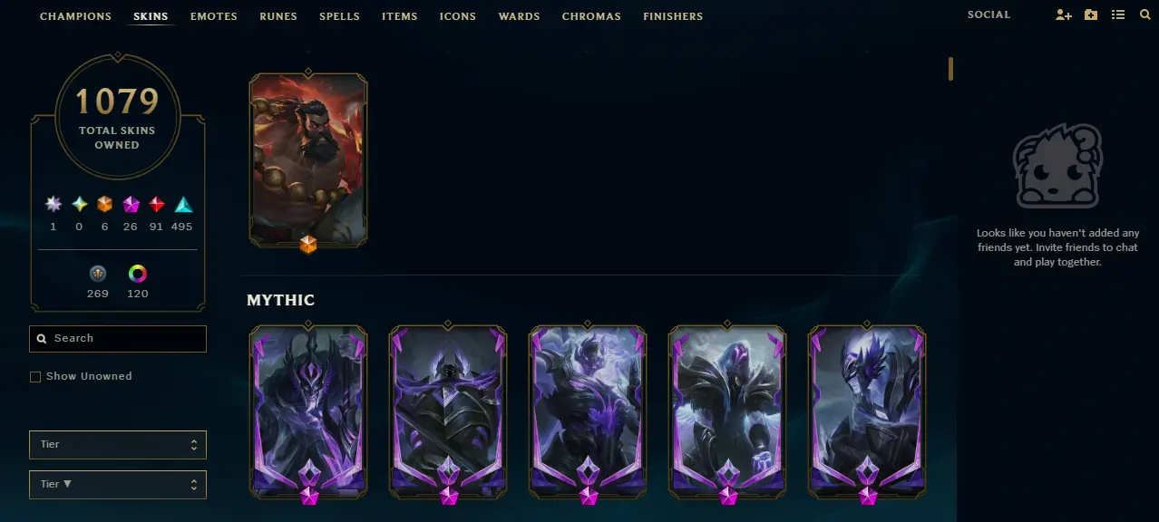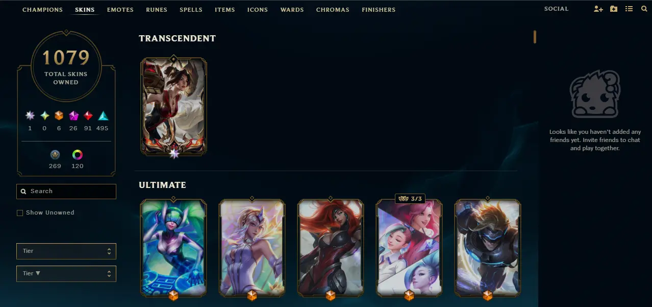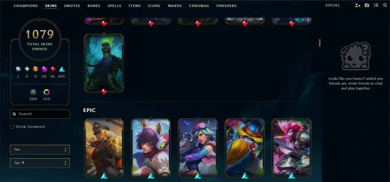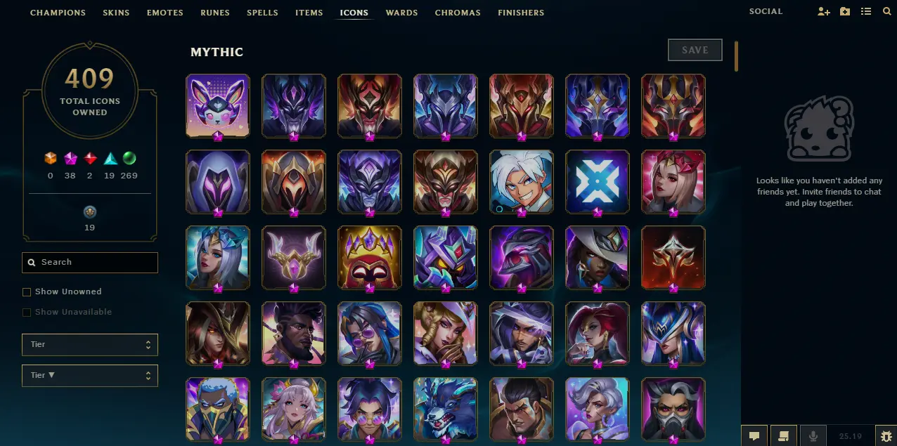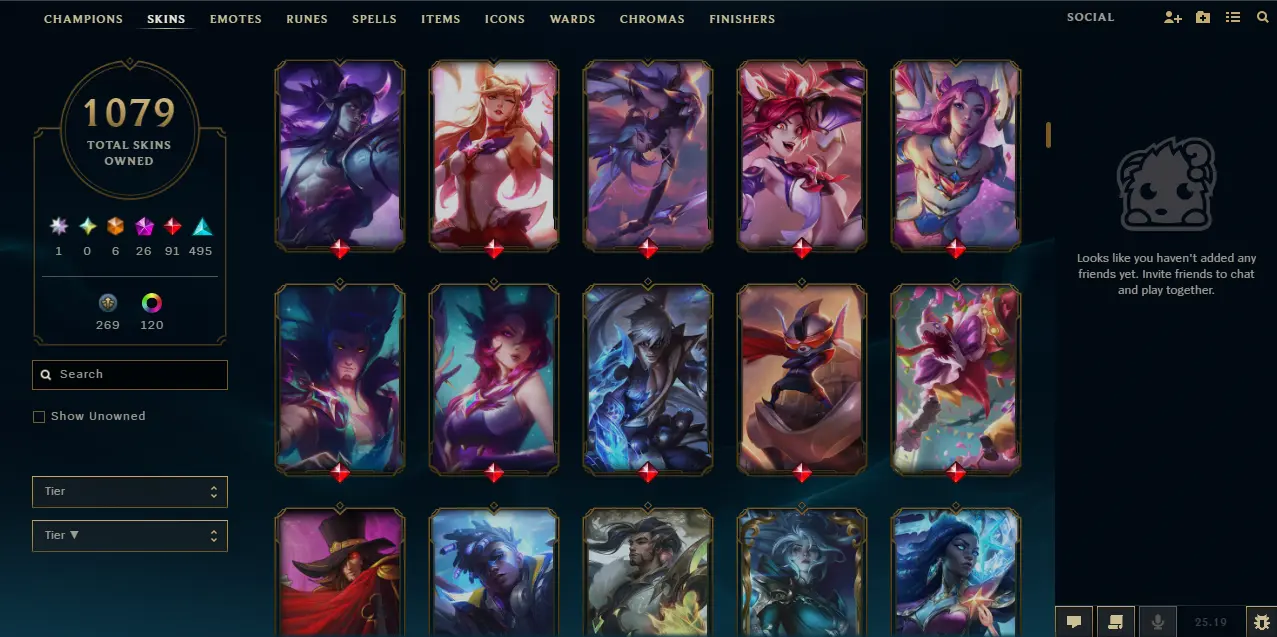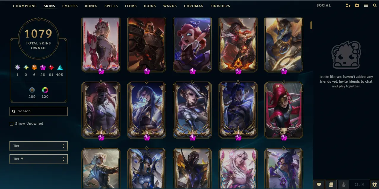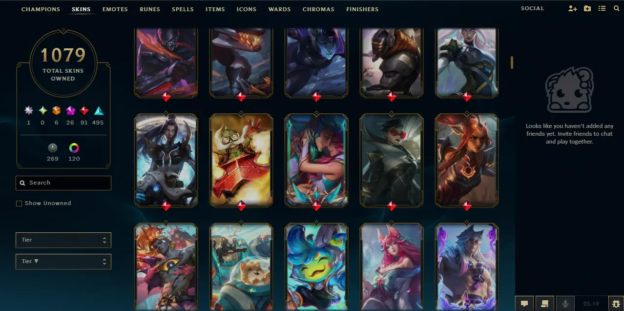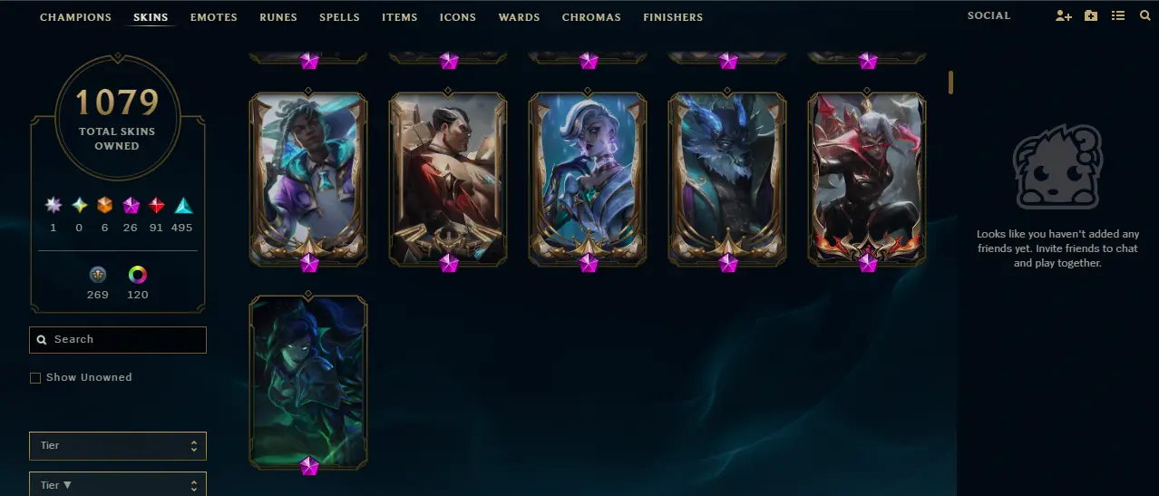 [EUW] S15-Bronze 3 + All Champions + 1079 skins ~ Risen Legend Kai'Sa&Vayne + Peacemaker High Noon Yone + 122 Chromas + 409 Icons
