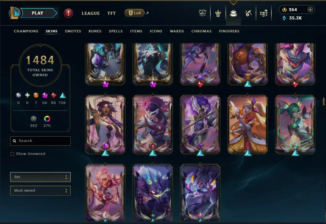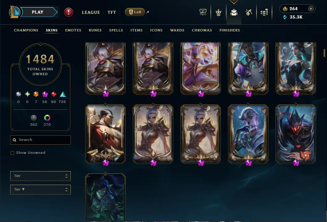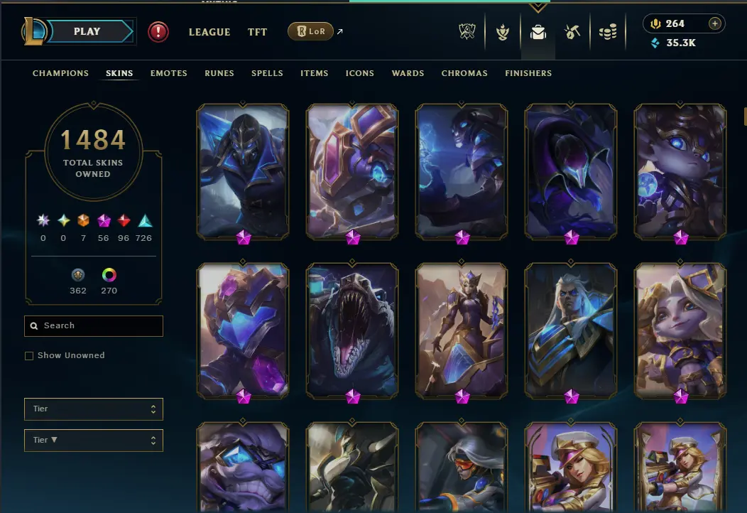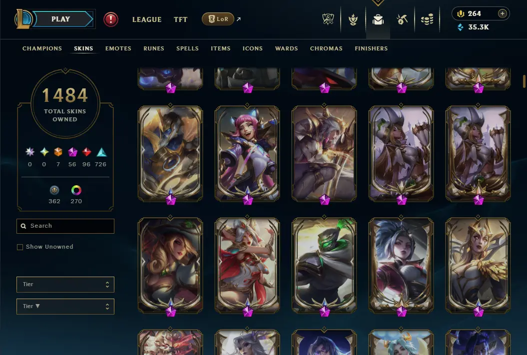🌎 NA | 1484 Skins | Quantum Galaxy Slayer Zed ⚔️ | King Rammus 👑 | Prestige Bewitching Miss Fortune (2022) | 273 Chromas | 675 Icons | 12 TFT Chibi Pets 🐉 | Rare & exclusive content — perfect for collectors!