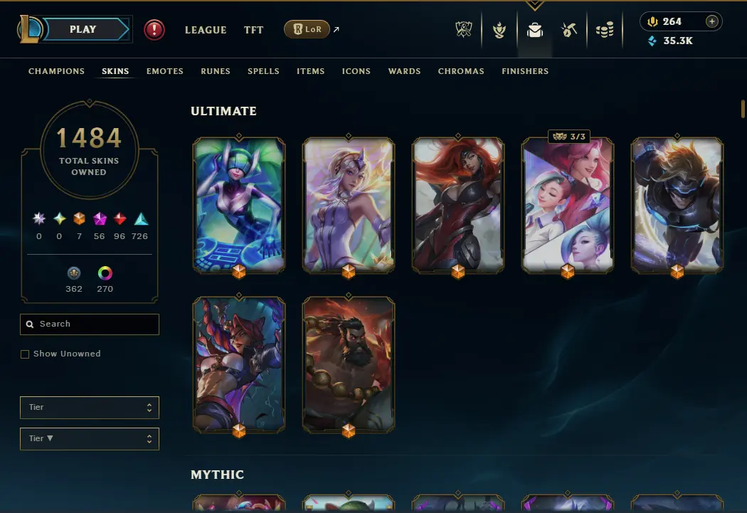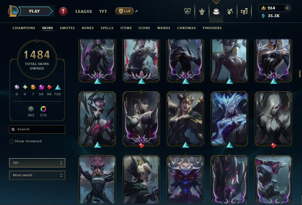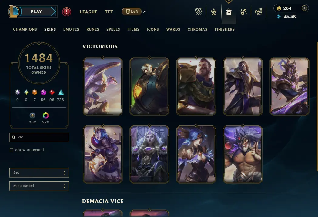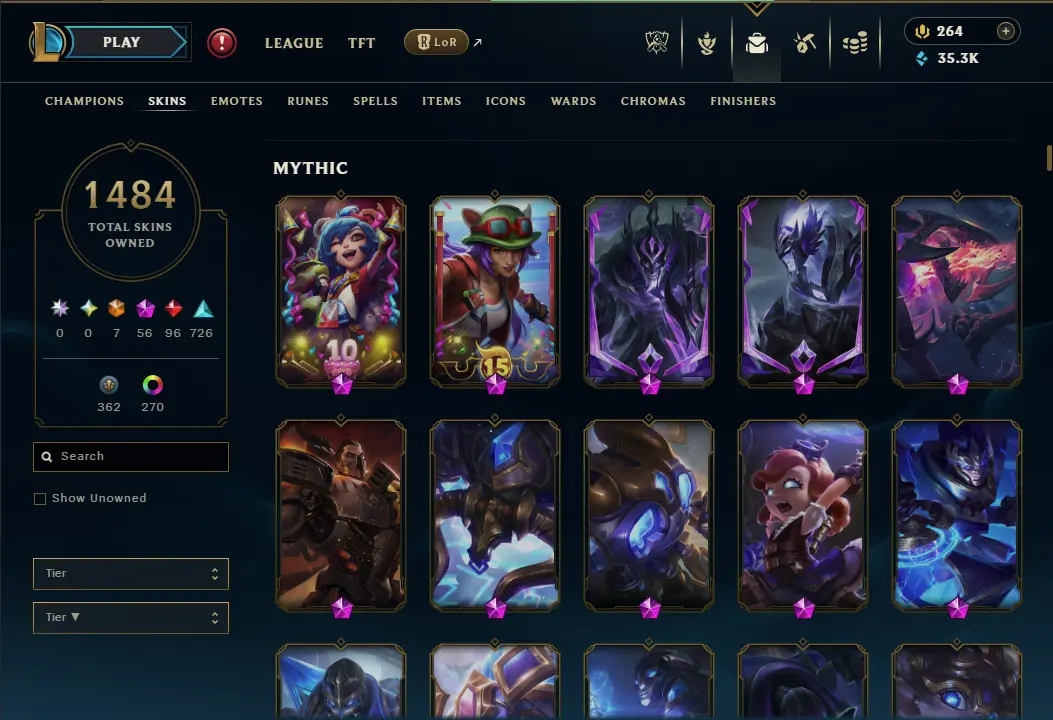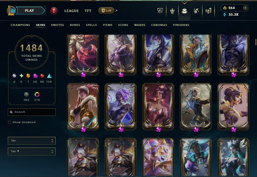 🌎 NA | 1484 Skins | Quantum Galaxy Slayer Zed ⚔️ | King Rammus 👑 | Prestige Bewitching Miss Fortune (2022) | 273 Chromas | 675 Icons | 12 TFT Chibi Pets 🐉 | Rare & exclusive content — perfect for collectors!