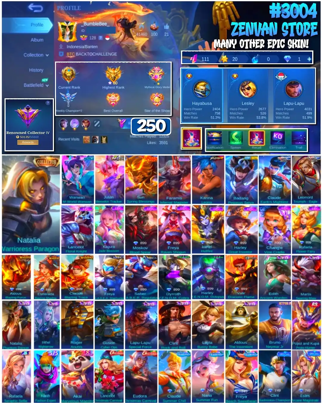 #3004 🔥 259 Skins 🔥 Collector Natalia 🔥 Mword Wanwan 🔥 Seint Seiya Badang 🔥 KoF Karina 🔥 Many Epic 🔥 Safe Account ✅