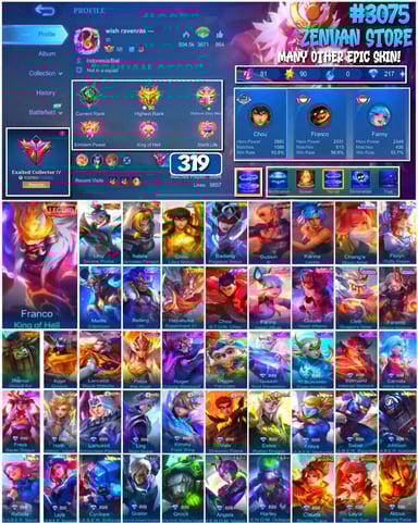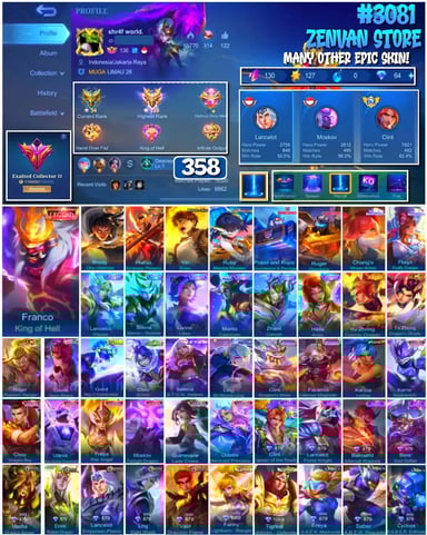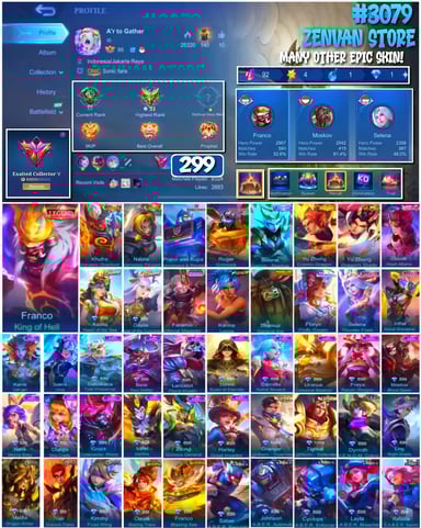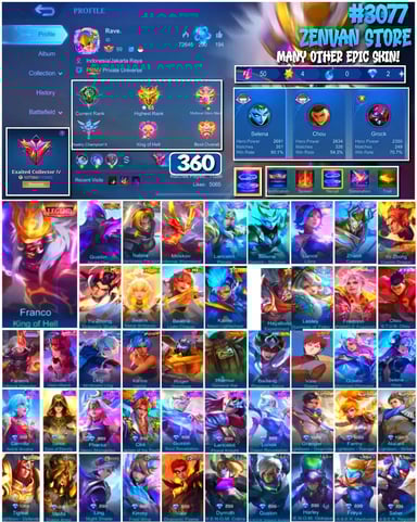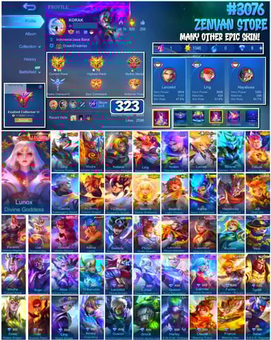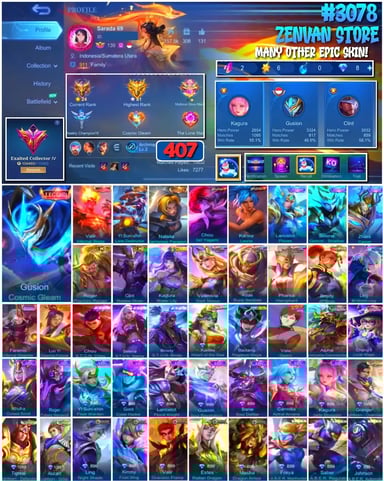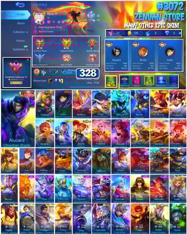#3063 🔥 391 Skins 🔥 Legend Alucard 🔥 Collector Benedetta, Natalia 🔥 Naruto, Sasuke, Killua 🔥 Exorcist Kagura 🔥 Aspirant Ruby 🔥 KoF Karina, Aurora 🔥 Many Limited 🔥 Many Epic 🔥 Safe Account ✅