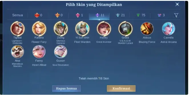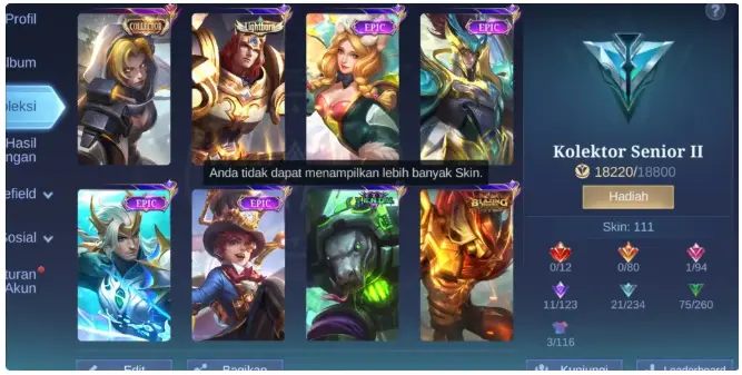 ML422 // Hero 87, Skin 111 including 1 Classic, 1 Legendary, 10 Epic Skins, Epic 2 Rank