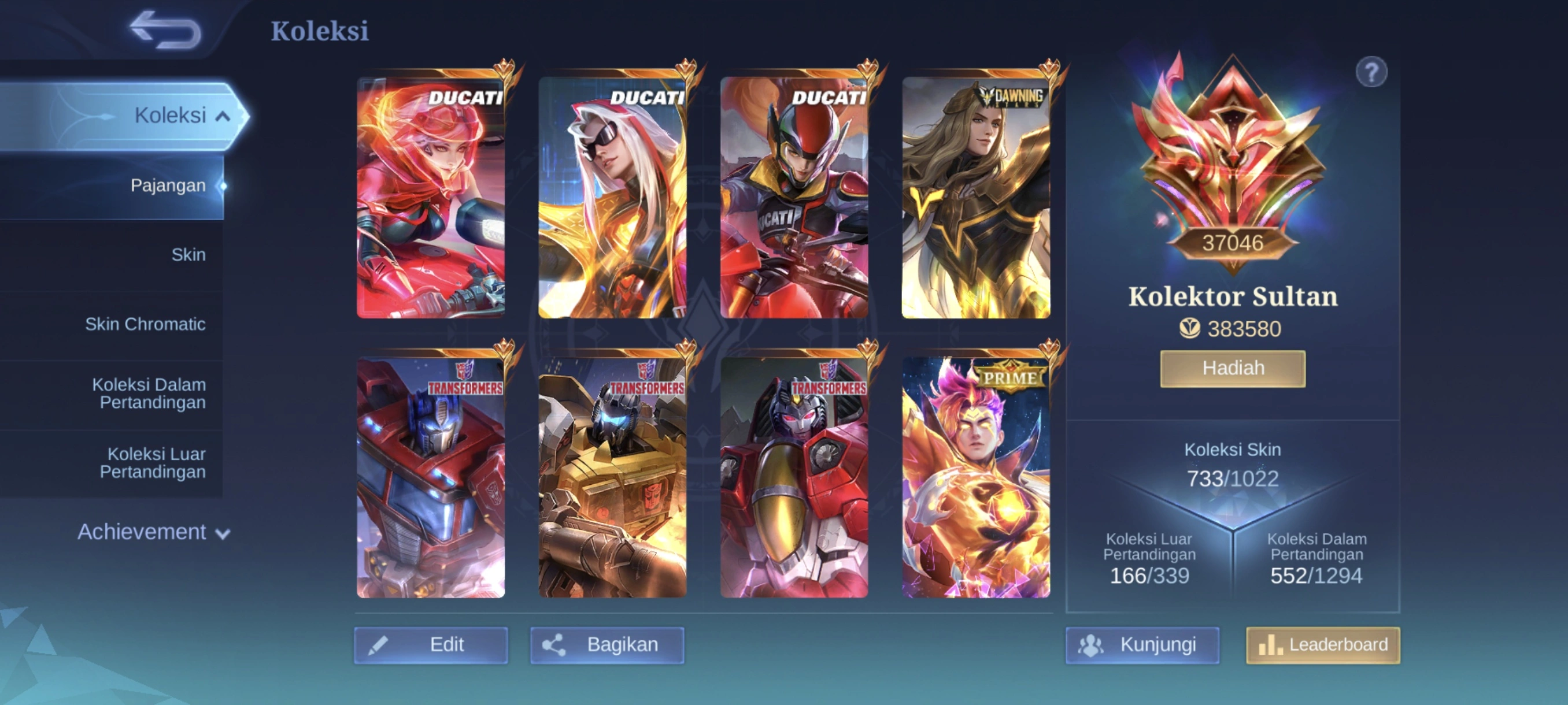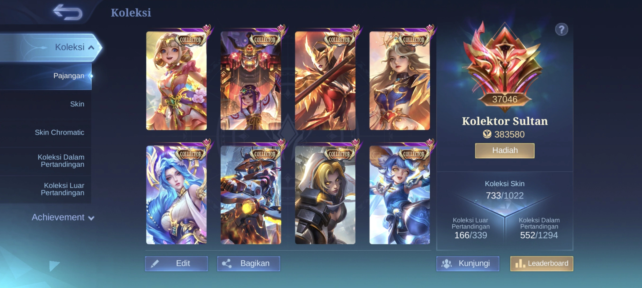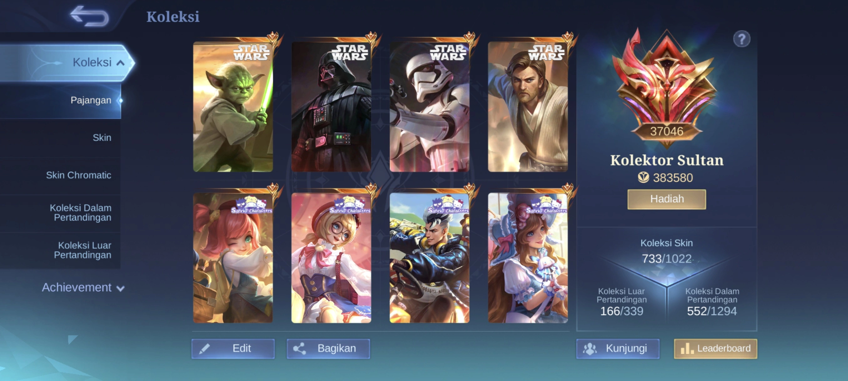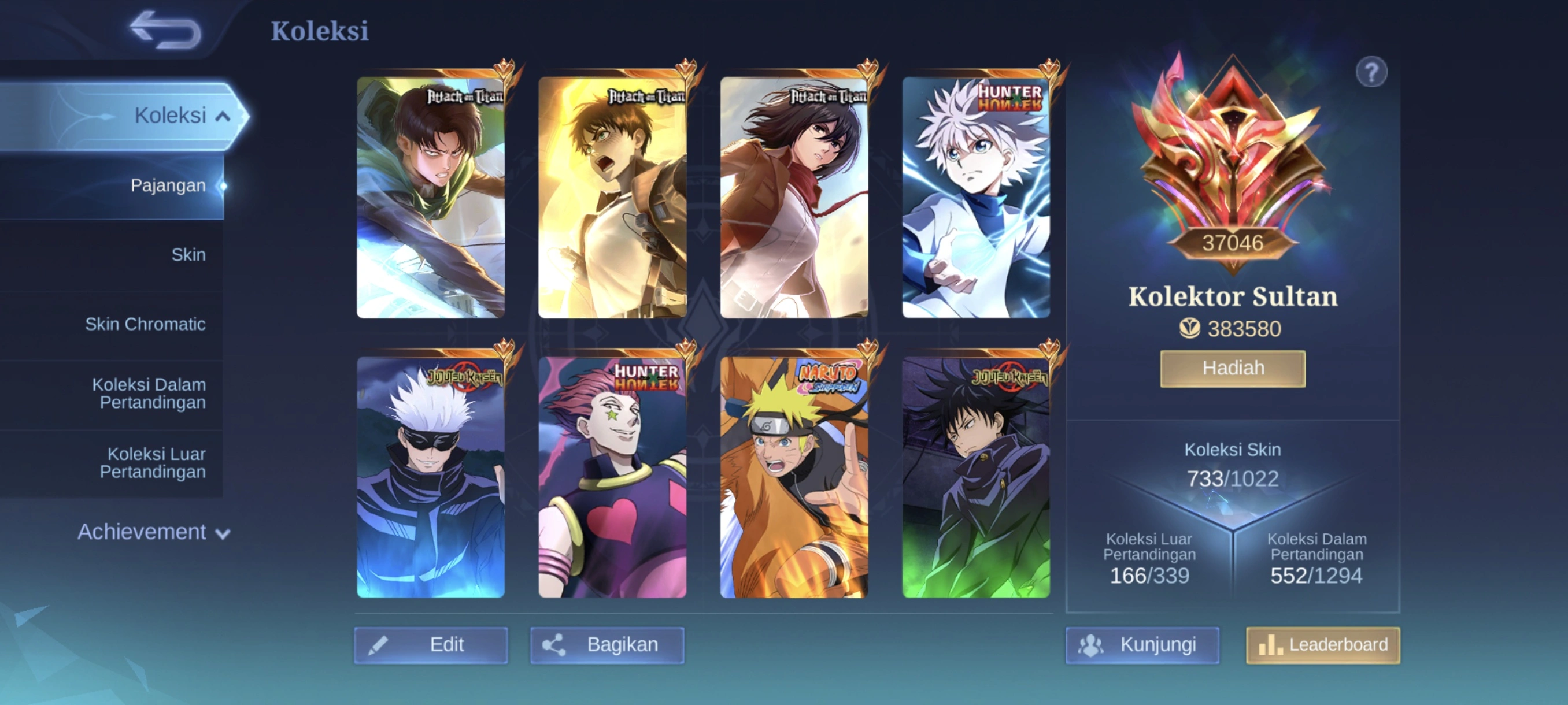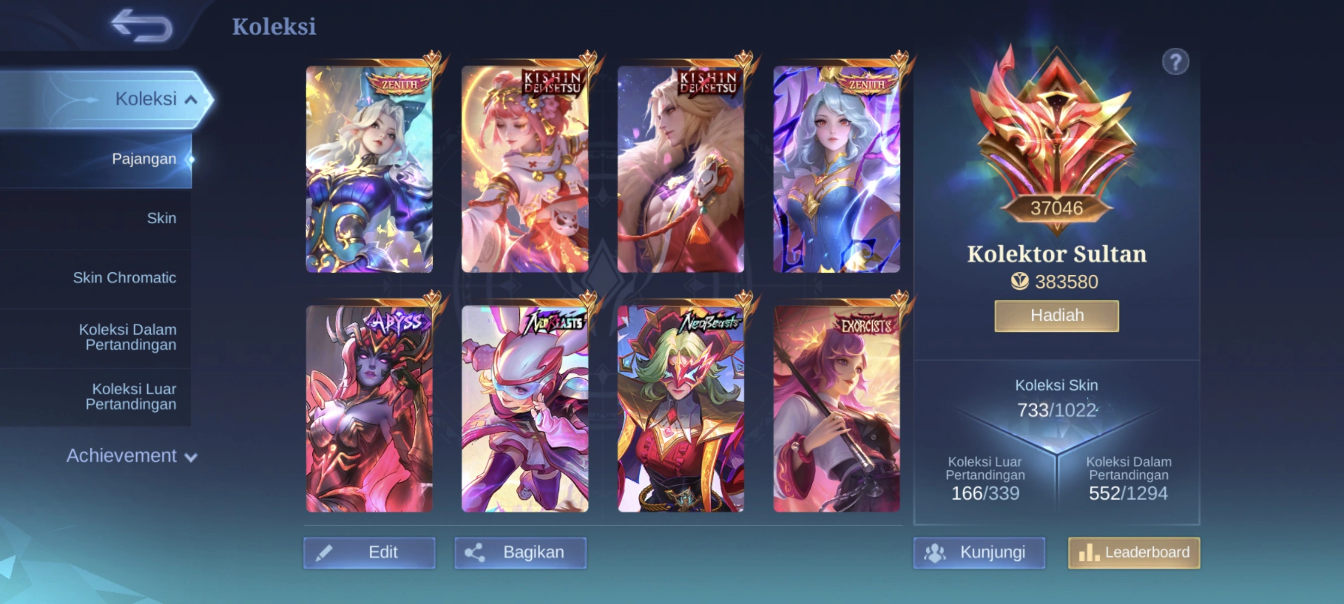 MM300|Lv166|733Skin|WORLDCOLLECTOR|HIGHWR|5LEGEND|FULLAOT|FULLDUCATI|FULLSANRIO|FULLSTARWARS|2HxH|3JJK|2ZENITH|5ASPIRANTS|ABYSS Selena|2KISHIN|2NEOBEASTS|16COLLECTOR