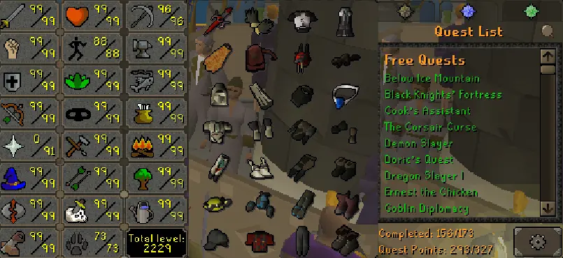 Max Melee Main | 2220+ Total | 290+ QP | F Cape | E Void | B Gloves | D Def | Rune Pouch | Skilling Outfits | Rare Pets ⸱ ChicksYOS0337