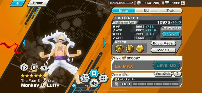 [3373][IOS ONLY] 4 EX META / Luffy Light + Garp + Sabo + Kuzan , 1586 GEMS IOS , Support 136% , Good Medal