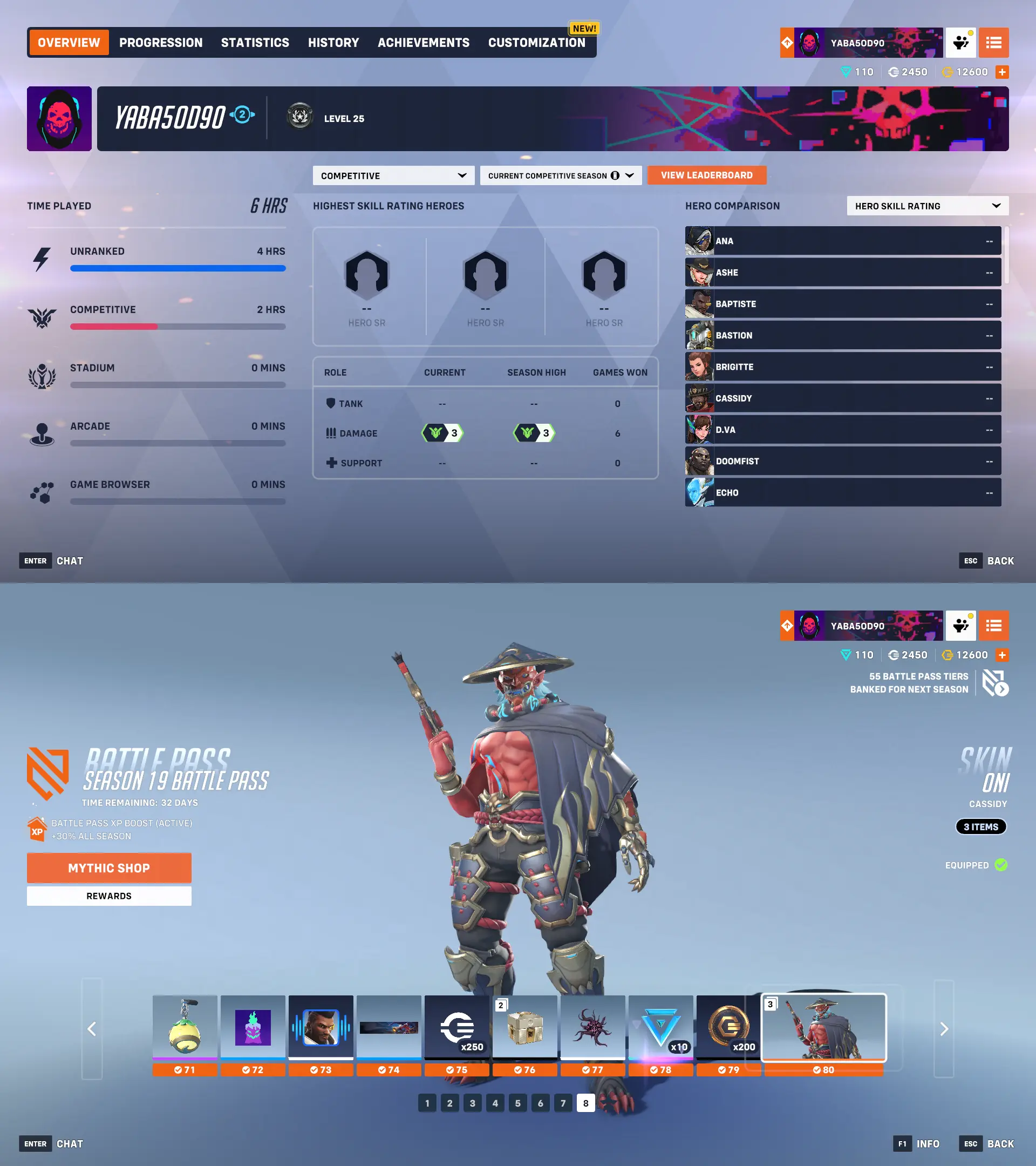 Master 3 DPS ⚡️ Ultimate Battle Pass Season 19 ⚡️ 18 Legendary Skin ⚡️ 110 Mythic Prisms ⚡️ 12600 OW Coins ⚡️ Full Access