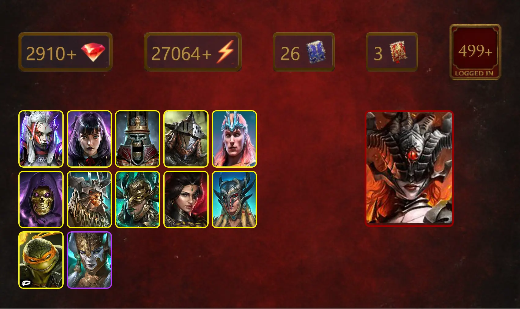 [STARTER]Georgid+Kurosa the Covetous+Visix+Alice+Rathalos+Loki+Skeletor+Iron Brago+Leminisi the Gold-Wing+Adelyn+Scyl+29Epics