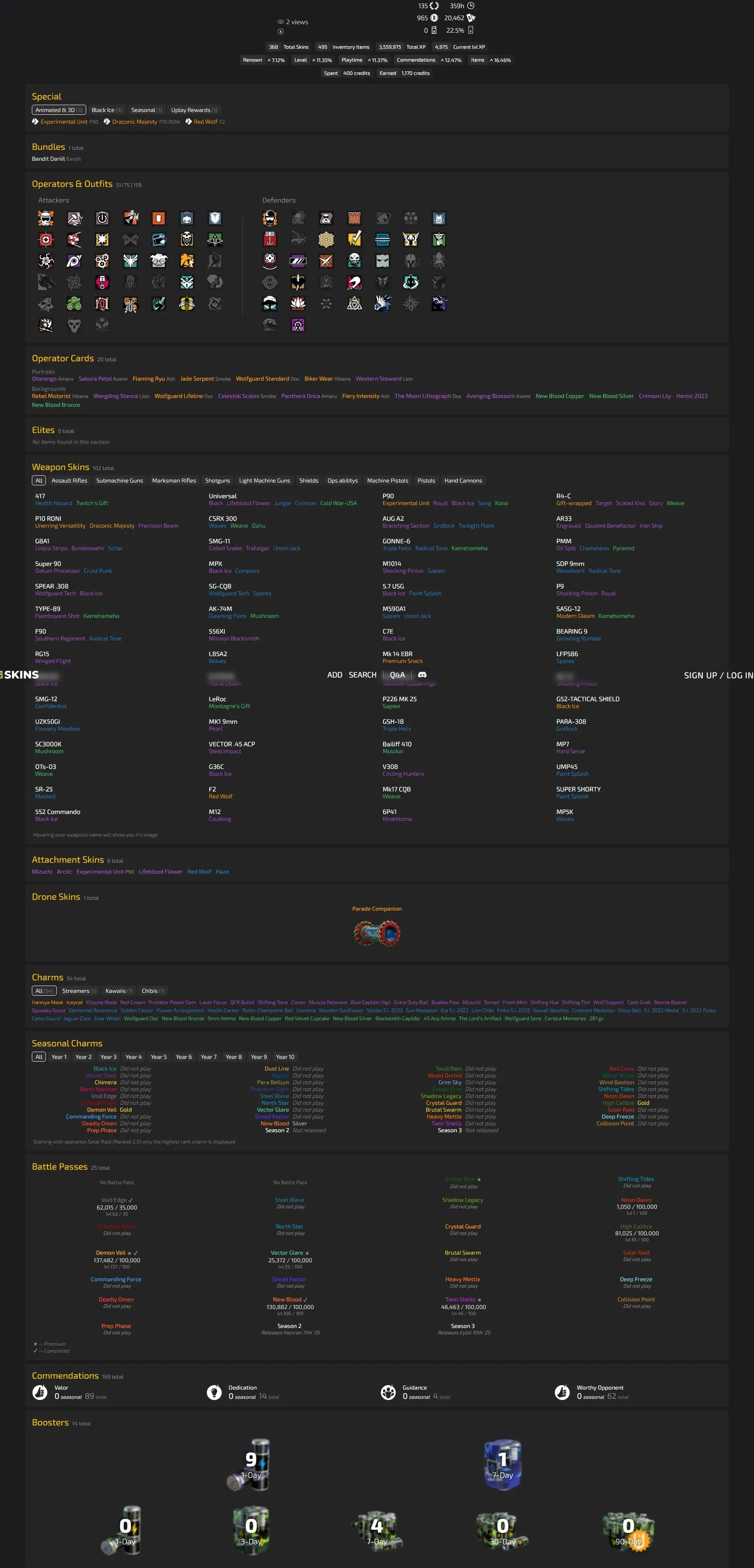PC|PSN [ Level 135 ] 4x Gold 9 Black Ice / 1 Seasonal / 3 Animated ⚡ 49 Operators 20462 Renown ✅ Full Access