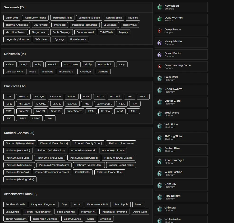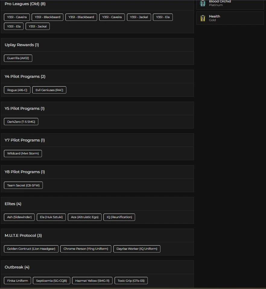 [UPLAY] 272 LVL ⸱ 32X BLACK ICES ⸱ 14X UNIVERSALS ⸱ 22X SEASONALS ⸱ 21X RANKED CHARMS 2X CHAMPION 2X EMERALD 14X PLATINUM ⸱ 68 OPERATORS ⸱ 92K RENOWN ⸱ FA