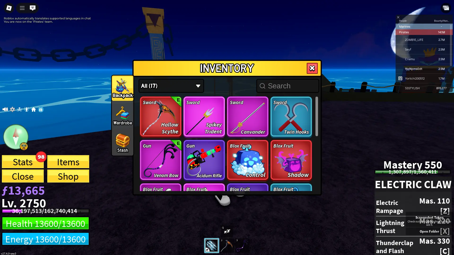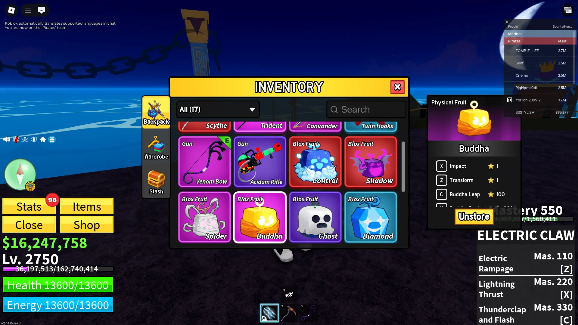 🌼 BLOX FRUIT 2750 MAX LEVEL 🎃 EC MAX 🎃 CONTROL + SHADOW + BUDDHA INVENTORY 🎃 13K FRAGMNT🎃 16M Beli 🎃2.5M bounty🎃 Unlinked✅ INSTANT DELIVERY ✅