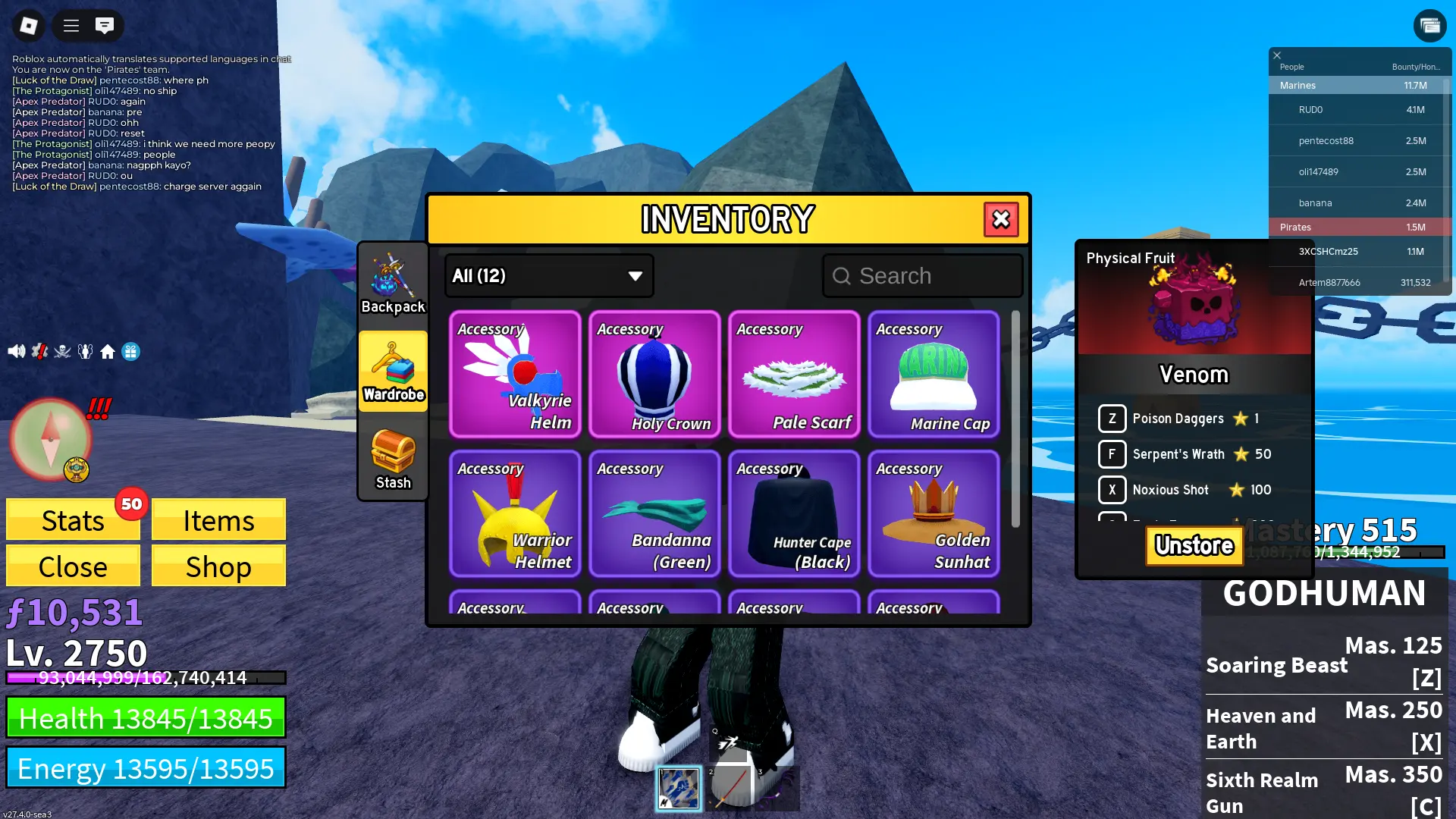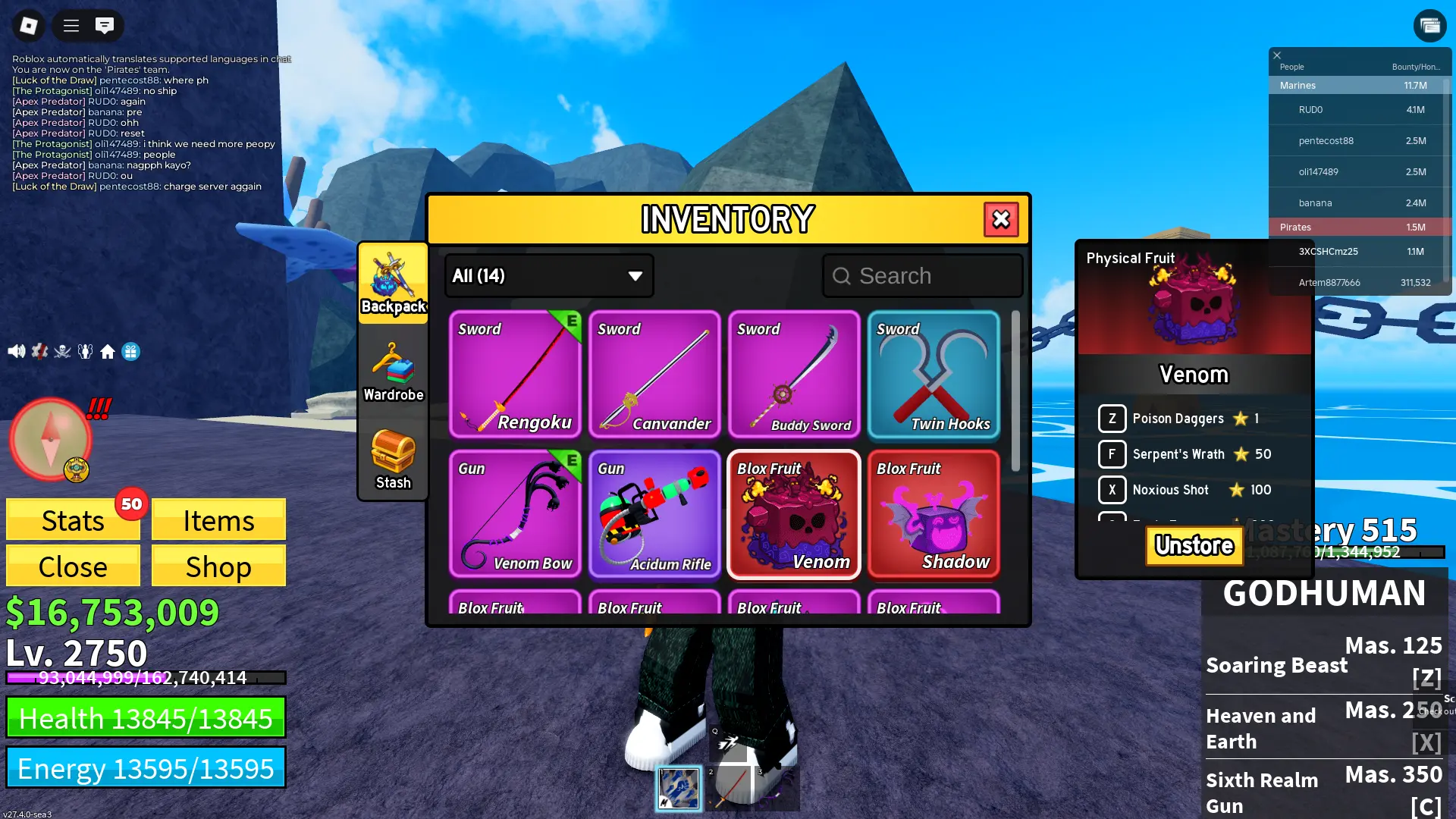 🌼 BLOX FRUIT 2750 MAX LEVEL 🎃 GHM 🎃 VENOM + SHADOW INVENTORY 🎃 10K FRAGMNT🎃 16M Beli 🎃1.1M bounty🎃 Unlinked✅ INSTANT DELIVERY ✅