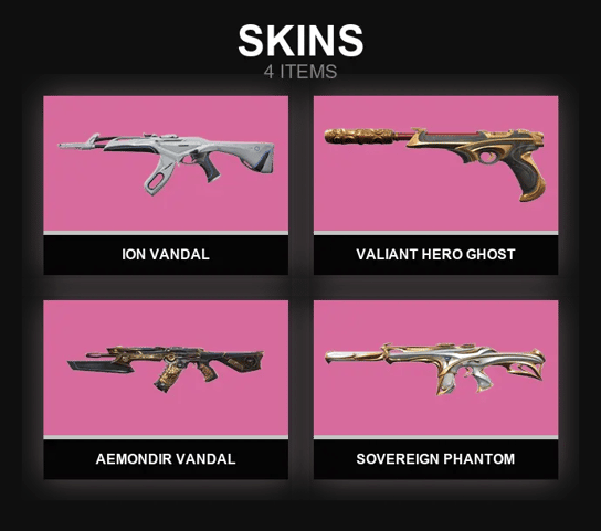 EU | 4 skins 🐓 Ion Vandal 🐓 Aemondir Vandal 🐓 Sovereign Phantom 🐓 Valiant Hero Ghost 🐓 L4675