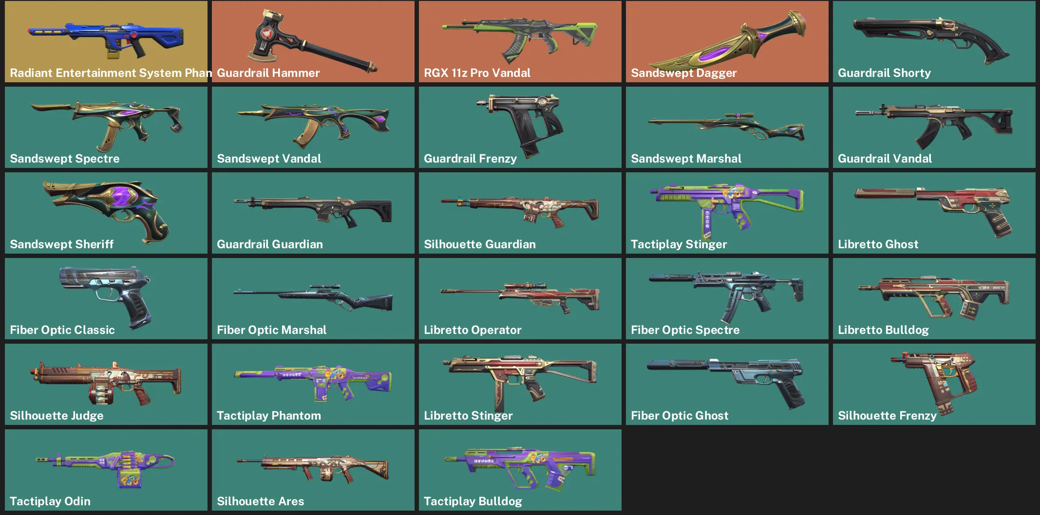 🌏AP 🎮 RANKED READY ✨ Radiant Entertainment System Phantom 🔪 Guardrail Hammer ✨ RGX 11z Pro Vandal 🔪 Sandswept Dagger ✨ Guardrail Shorty & More