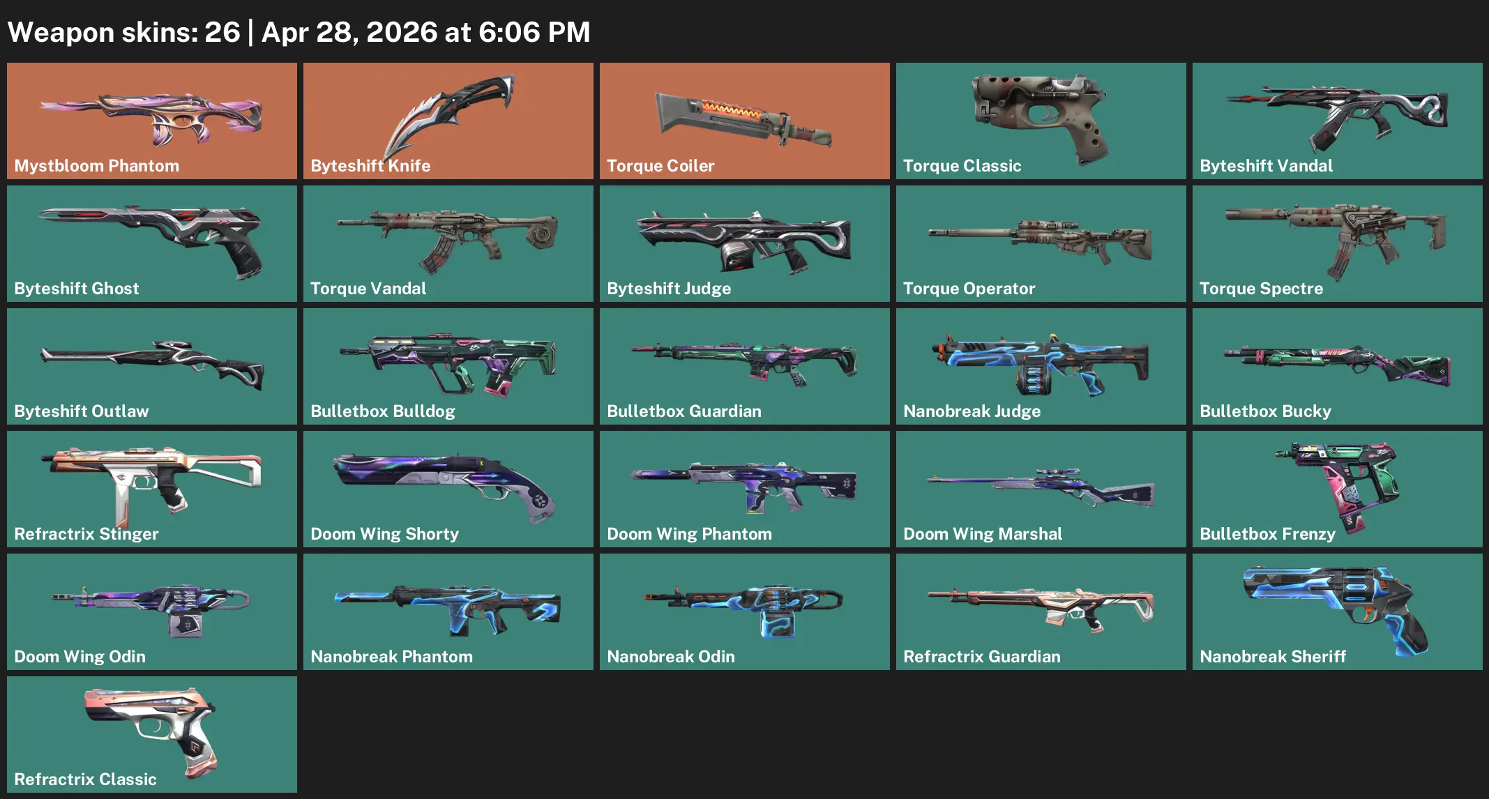 🌍EU | 26 Skins🎭 + 2 Knives🗡Mystbloom Phantom🌸Byteshift Knife🔪Torque Coiler⚙️ | Byteshift Vandal💜 Doom Wing Phantom🔥 | ~2,175 VP Inventory💸Ranked Ready⚔️