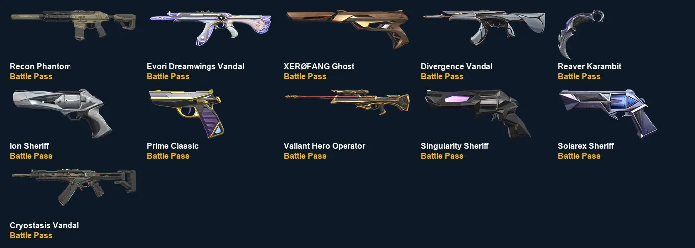 VA2592 AP 11 skins | Reaver Karambit+Evori Dreamwings Vandal+Divergence Vandal+Singularity Sheriff+Valiant Hero Operator+XEROFANG Ghost