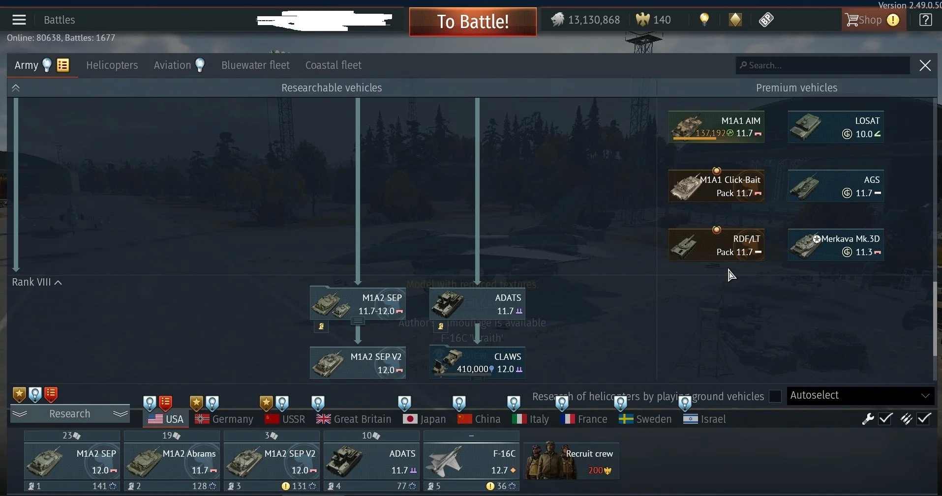War Thunder ⸱ |USA|12.0|ADATS| M1HC / M1A2 / M1A2 SEP/ M1A2 SEPv2|Air 14.0|(#S37991007f)