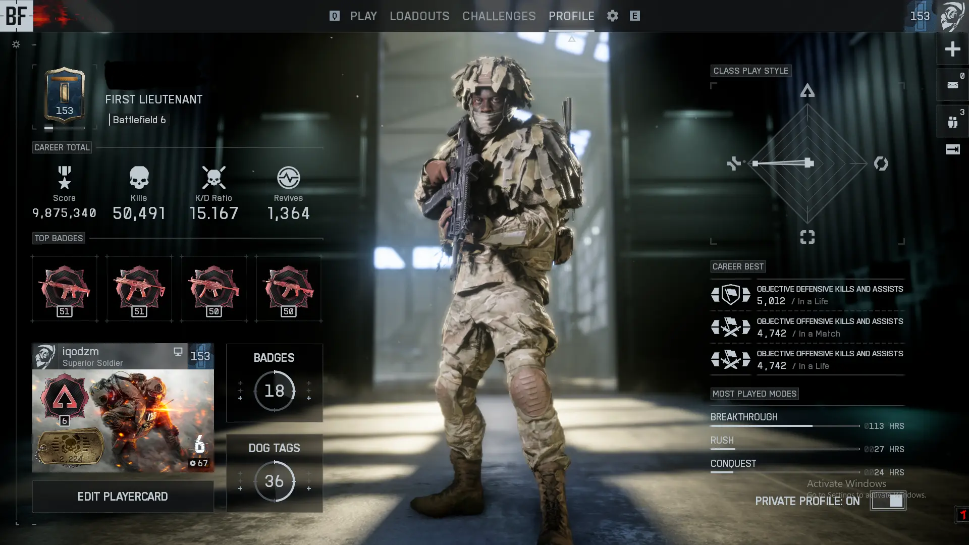 💠 BATTLEFIELD 6 💠 Level 150+ 💥 8 Weapons Level 50+ • 1 Weapon Level 30+ 🪖 41/41 Guns Unlocked 🎯 PSR Sniper Unlocked 🧩 90% Challenges Completed 👥 18+ Operators 🕒 270+ Hours Played — Most Stacked Account