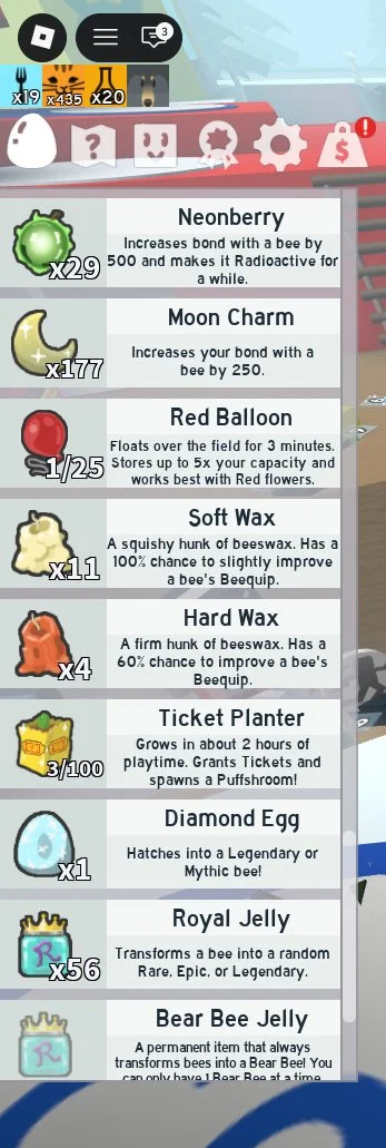 Roblox1070 42 Bees, Bubble Mask, 2X BEE Gather, Bear bee, Honey Belt, Spicy Bee, Tadpole bee