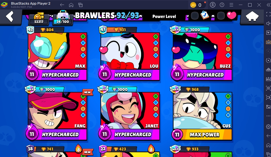 10 TITLES ⭐ 221 SKINS ⭐ 53.300 TROPHY ⭐ 92 BRAWLERS ⭐ 20 MAX ⭐ 17 HYPERCHARGED ⭐ CHAINSAW BUSTER ⭐ CURSED KENJI ⭐ GUARD RICO ⭐ SCARLET PALADIN SURGE ⭐ OCTO FANG ⭐ SPIKE ⭐ LEGENDARY ⭐ LEON