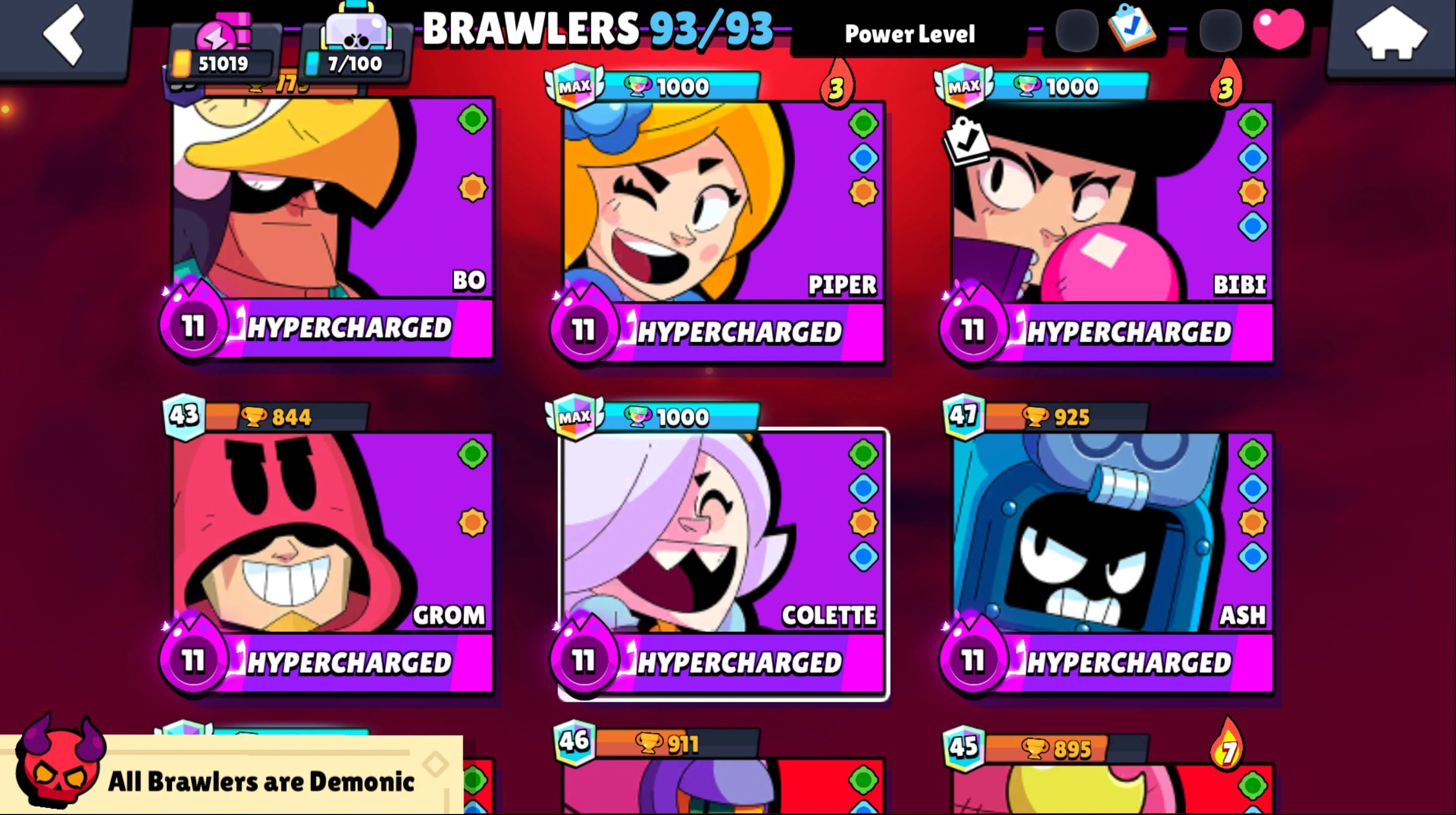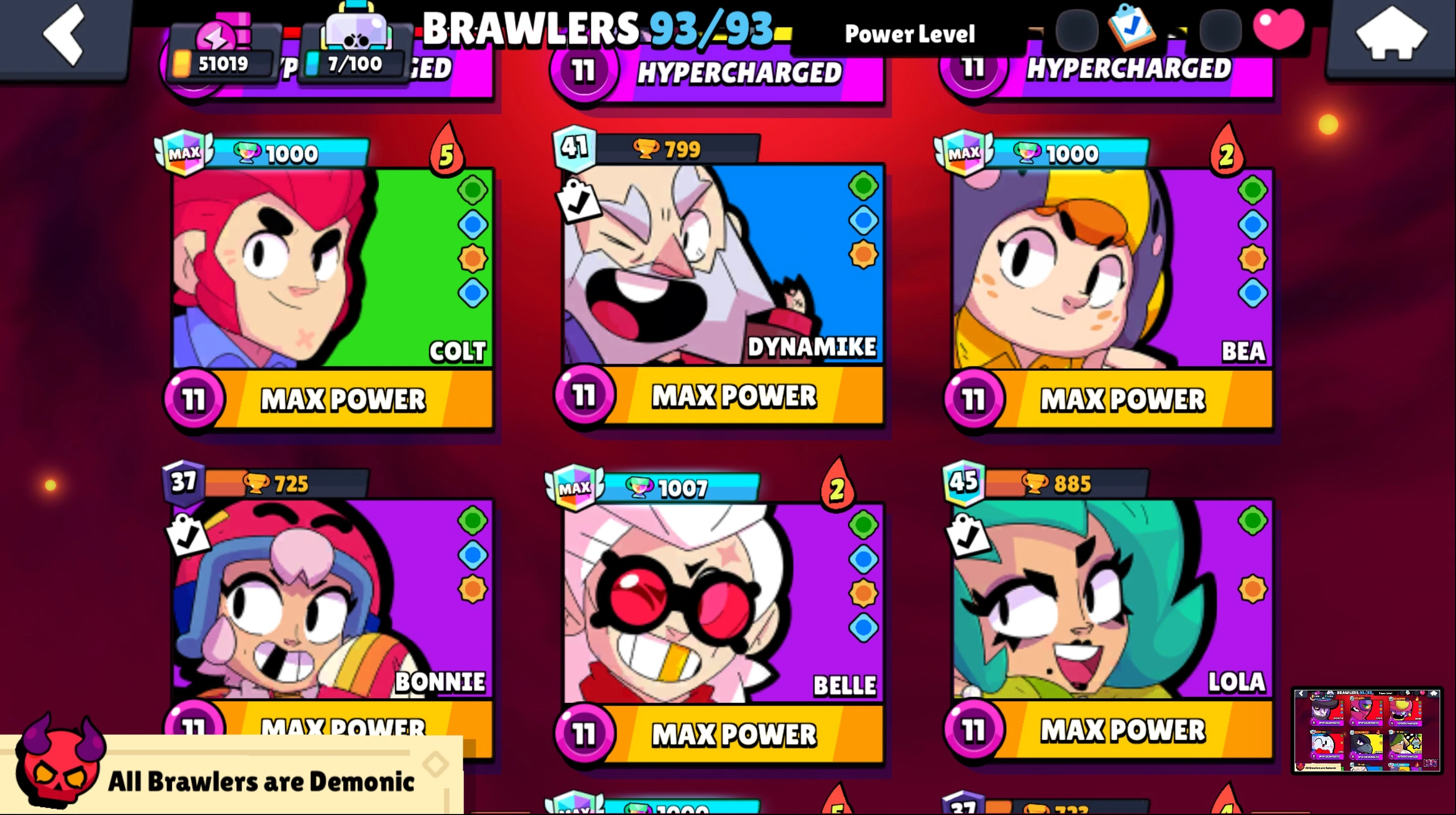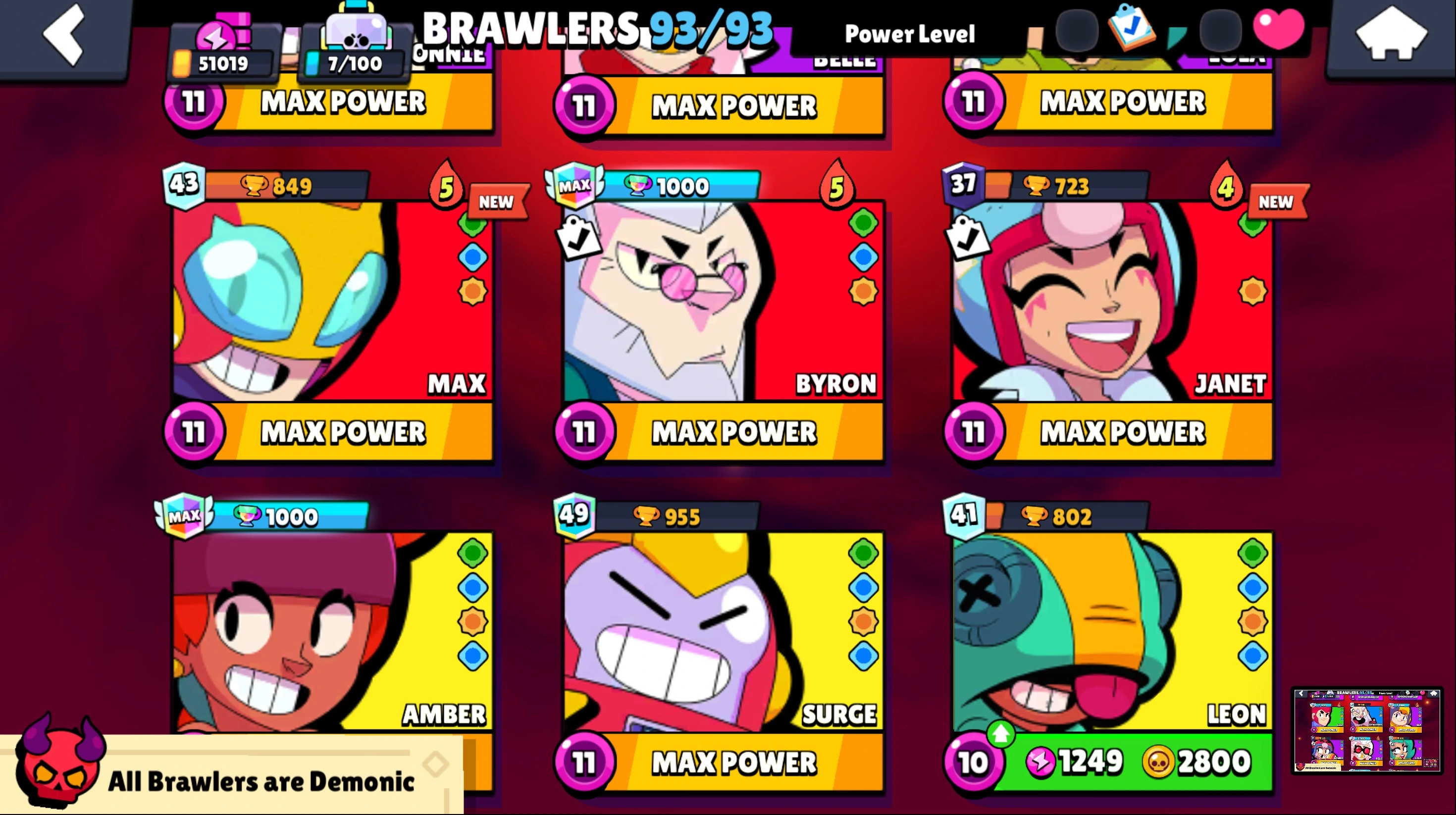 11.11 PIN ⭐ TRIXIE COLETTE ⭐ MERCHANT GALE ⭐ 219 SKINS ⭐ 51.000 TROPHY ⭐ 93 BRAWLERS ⭐ 29 MAX ⭐ 18 HYPERCHARGED ⭐ BELLE GOLDHAND ⭐ MECHA MORTIS ⭐ CESAR SAM ⭐ SURGE KONG ⭐ OCTO FANG ⭐ DARK LORD SPIKE ⭐ LEGENDARY ⭐ LEON