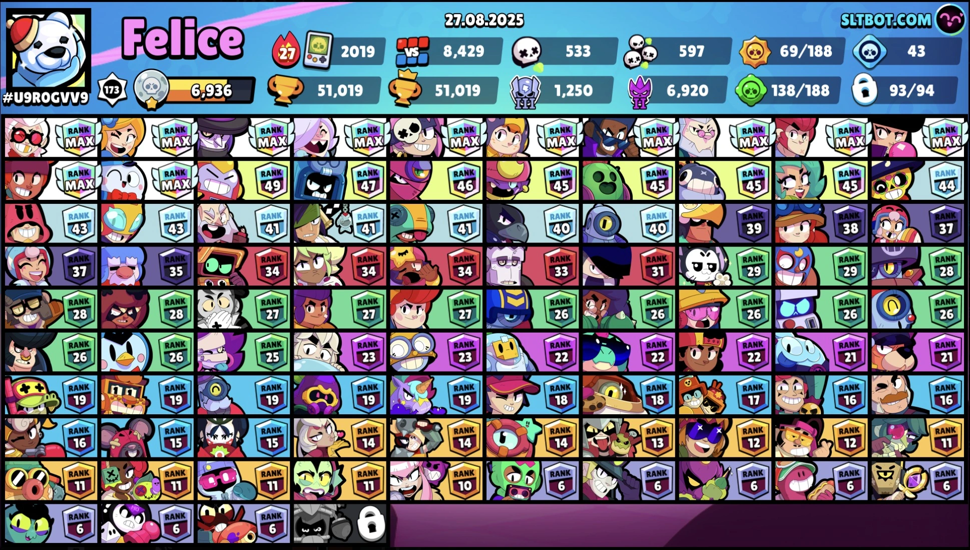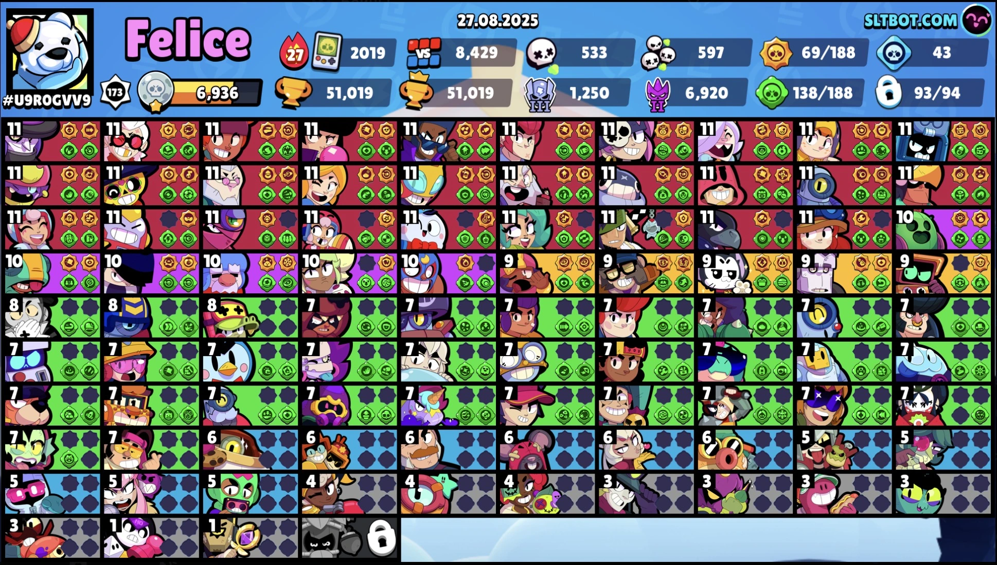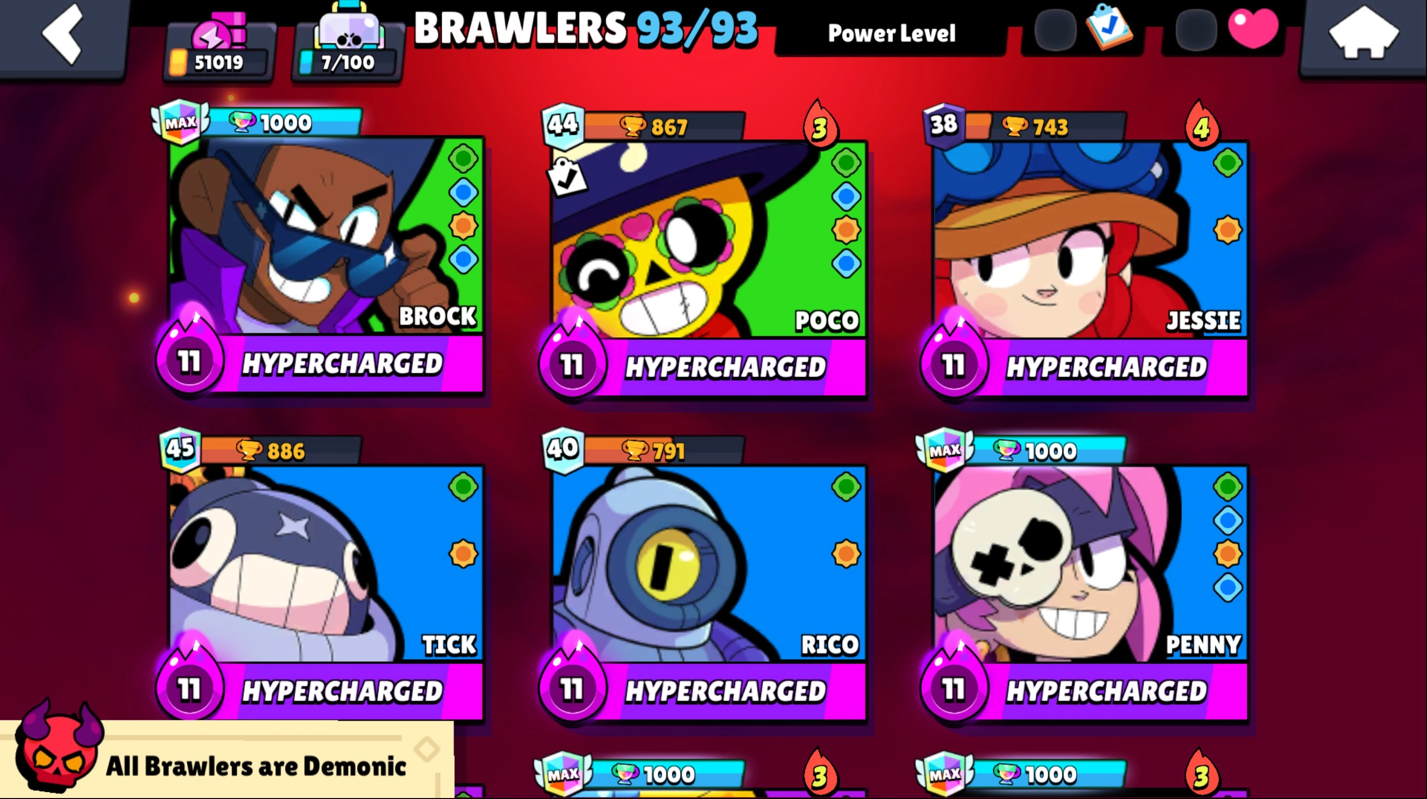 11.11 PIN ⭐ TRIXIE COLETTE ⭐ MERCHANT GALE ⭐ 219 SKINS ⭐ 51.000 TROPHY ⭐ 93 BRAWLERS ⭐ 29 MAX ⭐ 18 HYPERCHARGED ⭐ BELLE GOLDHAND ⭐ MECHA MORTIS ⭐ CESAR SAM ⭐ SURGE KONG ⭐ OCTO FANG ⭐ DARK LORD SPIKE ⭐ LEGENDARY ⭐ LEON