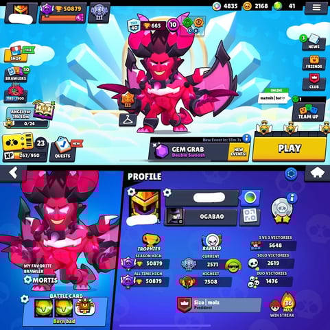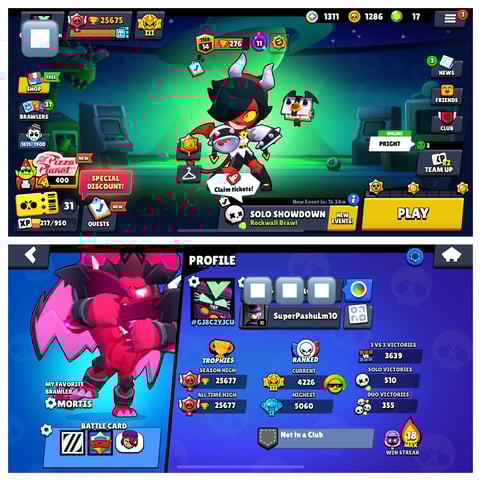 13.5k Trophies 🏆 | 46 Brawlers ✅ 4 Hypercharged ⸱ Dynamike , Stu , Mortis , Tara ✅ 3 Max ⸱ Colt , Rico , Crow 💥 69 Skins 🎨 Instant Delivery 🚀 #B749