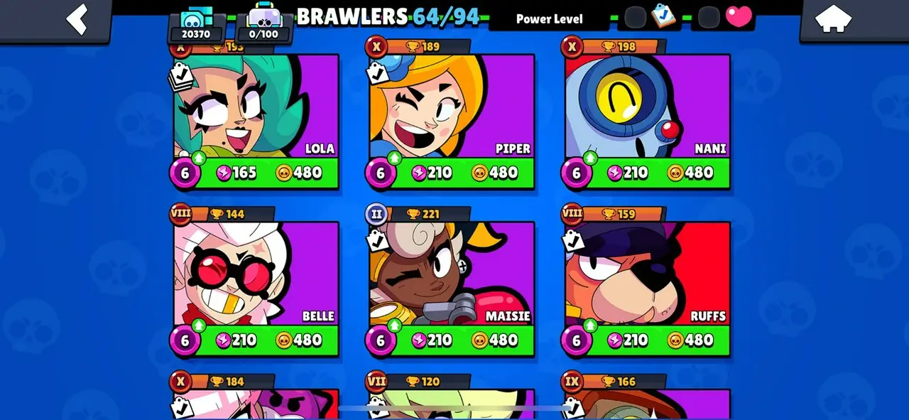 • 20K TROPHIES ║ 80+ SKINS ⬠ 64 BRAWLERS ▣ 4 MAX × 8 HYPERCHANGE (MAX+ READY TO UNLOCK) ≣ 37 GEMS ▲ NAME CHANGE | NBS5