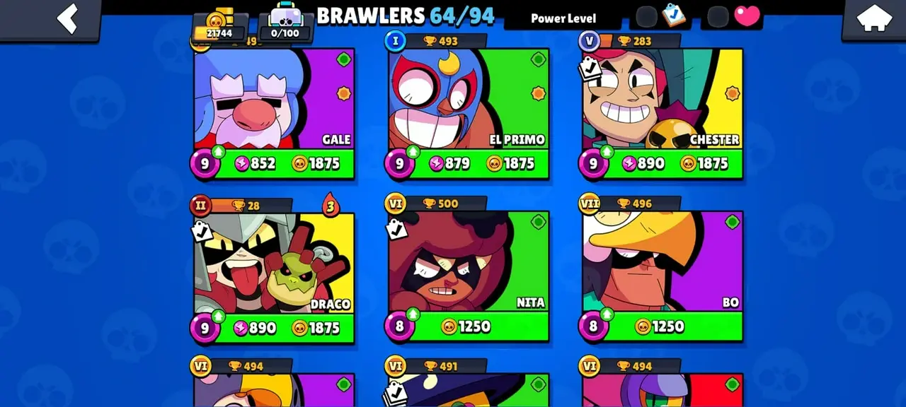 🛸 21K TROPHIES 🛡️ | 64 BRAWLER 🧛 | 2 MAX ⚙️ | 8 HYPERCHANGE (MAX+ READY TO UNLOCK) 🔮 | 15 GEMS 🥠 | 40+ SKINS 🕺 | NBS42