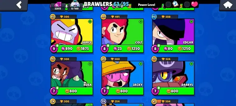 △ 22K TROPHIES ⬚ 61 BRAWLER ◉ 5 MAX ⊚ 4 HYPERCHANGE (MAX+ READY TO UNLOCK) ⎉ 120 GEMS ⎛ 60+ SKINS | NBS28