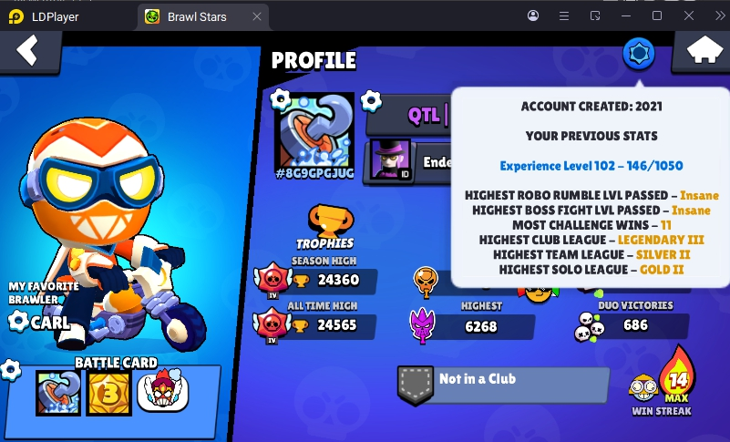 65 SKINS 🩵 24.360 TROPHIES 🏆 68 BRAWLERS 🧸 2 HYPERCHARGED 🩸 5 MAX BRAWLERS 🩷 GODZILLA BUZZ 🩵 BIKER CARL 🩵 COBRA LOLA 🩵 KRAKEN SURGE 🩵 VALKYRIE JANET 🎀