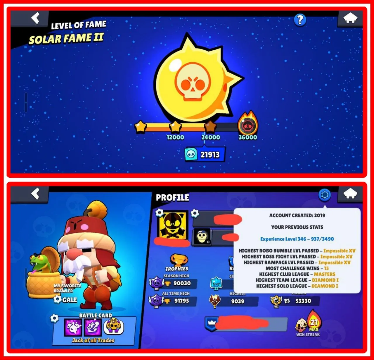 ❄️ ALL BRAWLERS MAX POWER & TIER 👑 MASTERS RANKED 🎯 41 TITLES 💎 42K 3vs3 WINS 💪 340 OG SKINS 🌟 66 HYPERCHARGED 😈 RARE WEREWOLF LEON ✨️ MERCHANT GALE 🔥 ONI KENJI 🥷 MECHA SURGE 🏅 SUPER RANGER BROCK 🚀 DUMPLING DARRYL 🐉 SOLAR FAME 2 ☀️ 90000 TROPHIES 🏆